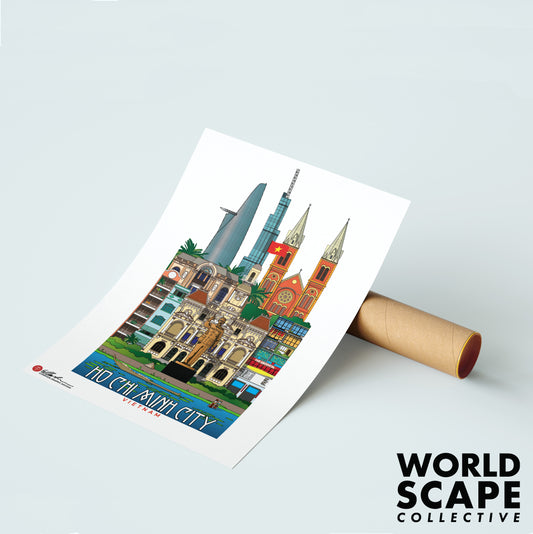 Experience the bustling streets of Bangkok, where vibrant markets and golden temples fill the scene, or explore the high-tech urban landscapes of Tokyo and Osaka. The Shanghai print brings the futuristic skyline to life, while the Beijing print highlights the grandeur of the Forbidden City and the Great Wall of China. Hong Kong showcases the stunning skyline and harbor, while Ho Chi Minh City brings the charming streets of Vietnam’s largest city into focus.