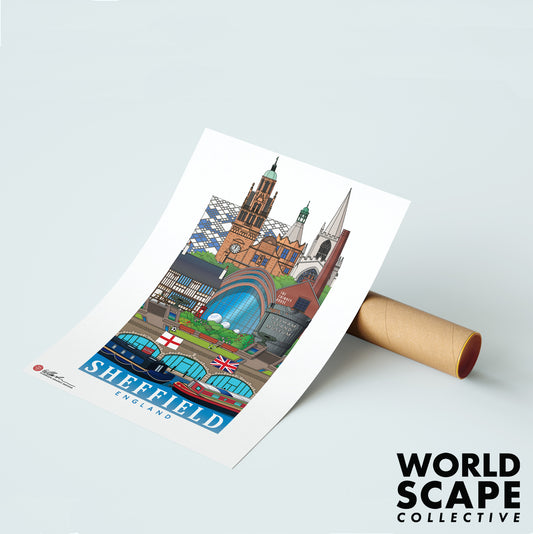Showcasing the transformation of Birmingham from industrial heartland to modern metropolis, this print features the city’s bold architecture and cultural diversity.