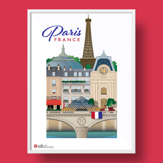The romantic allure of Paris is immortalized in this print, showcasing the city’s famous landmarks like the Eiffel Tower, Notre-Dame, and the Seine River. Perfect for lovers of French culture and timeless beauty.