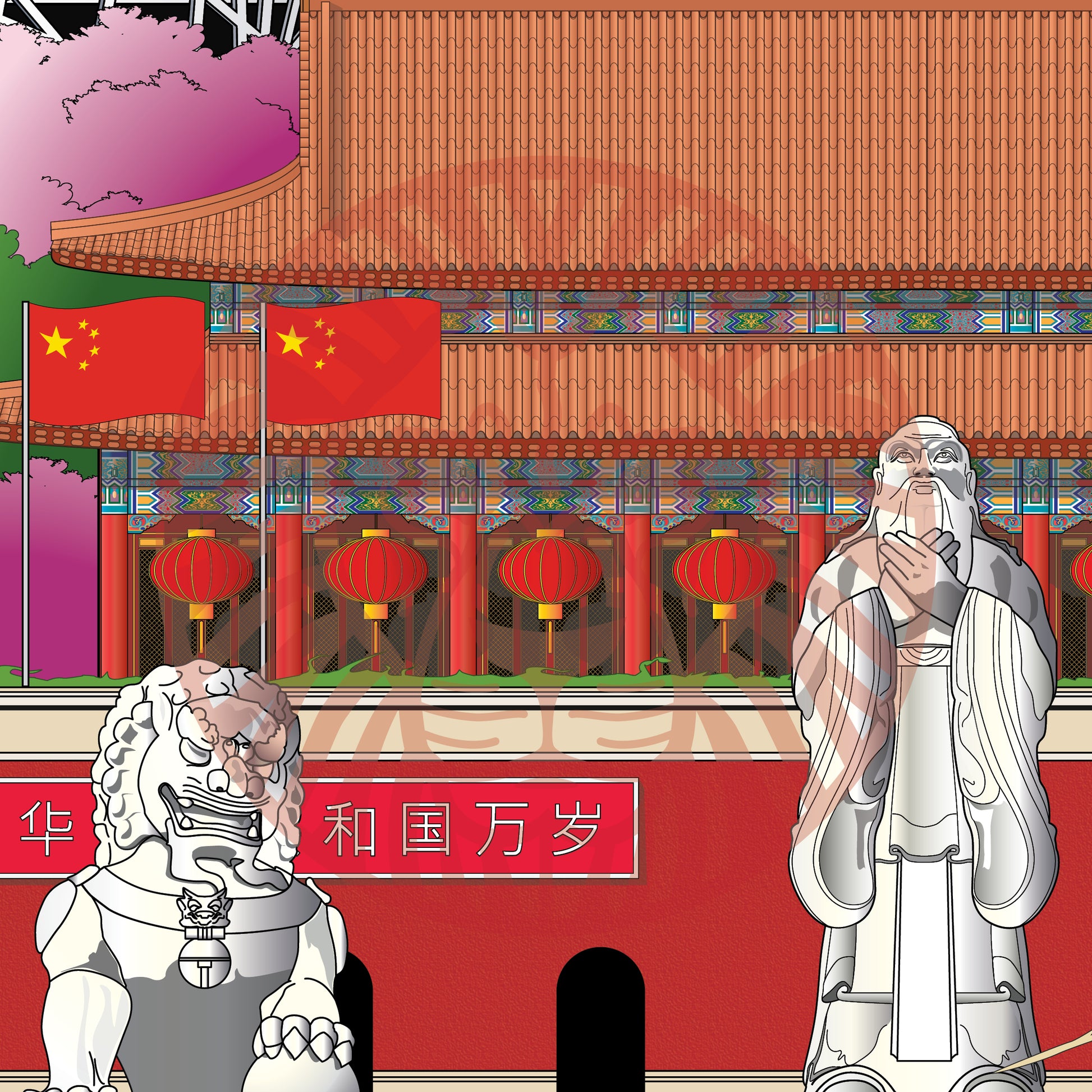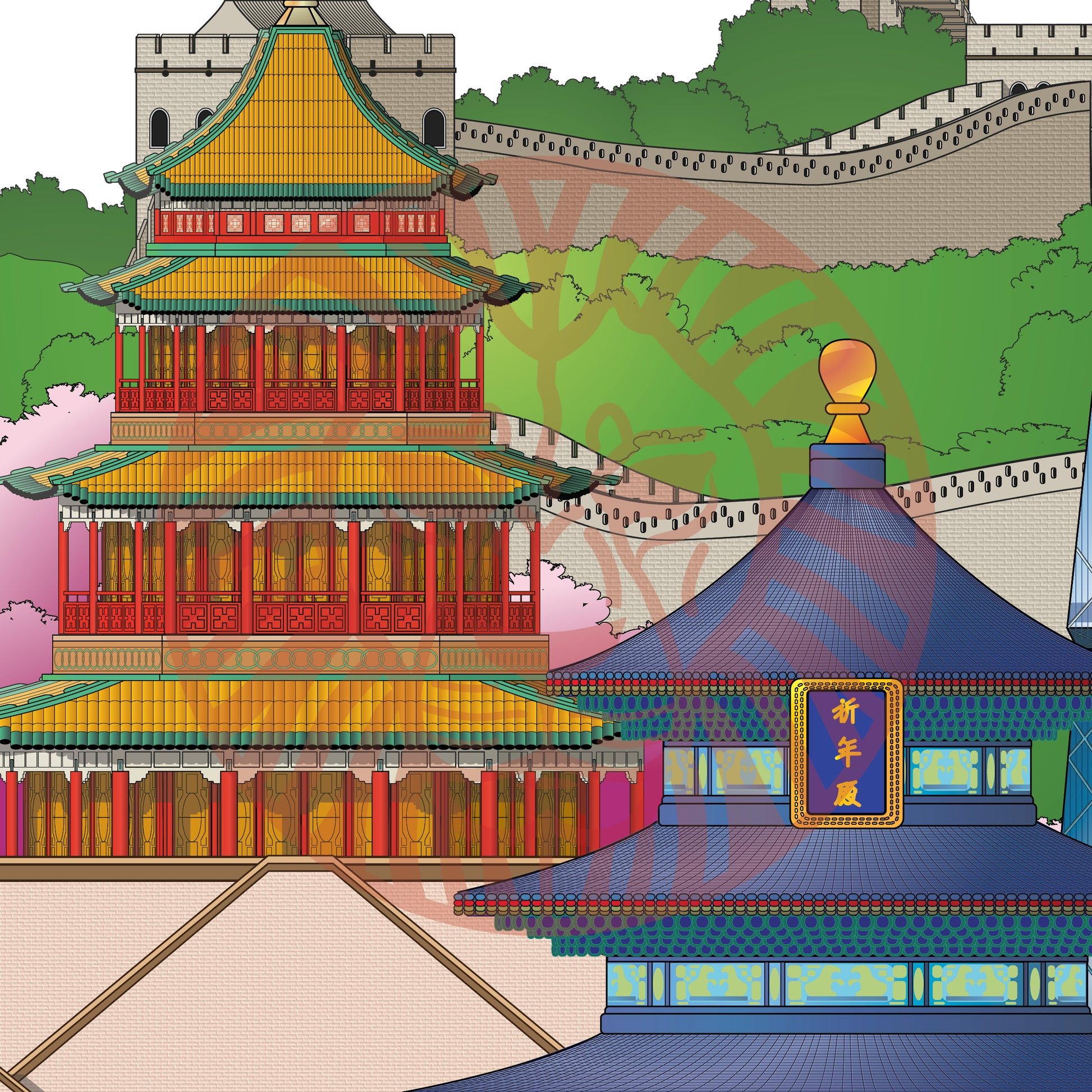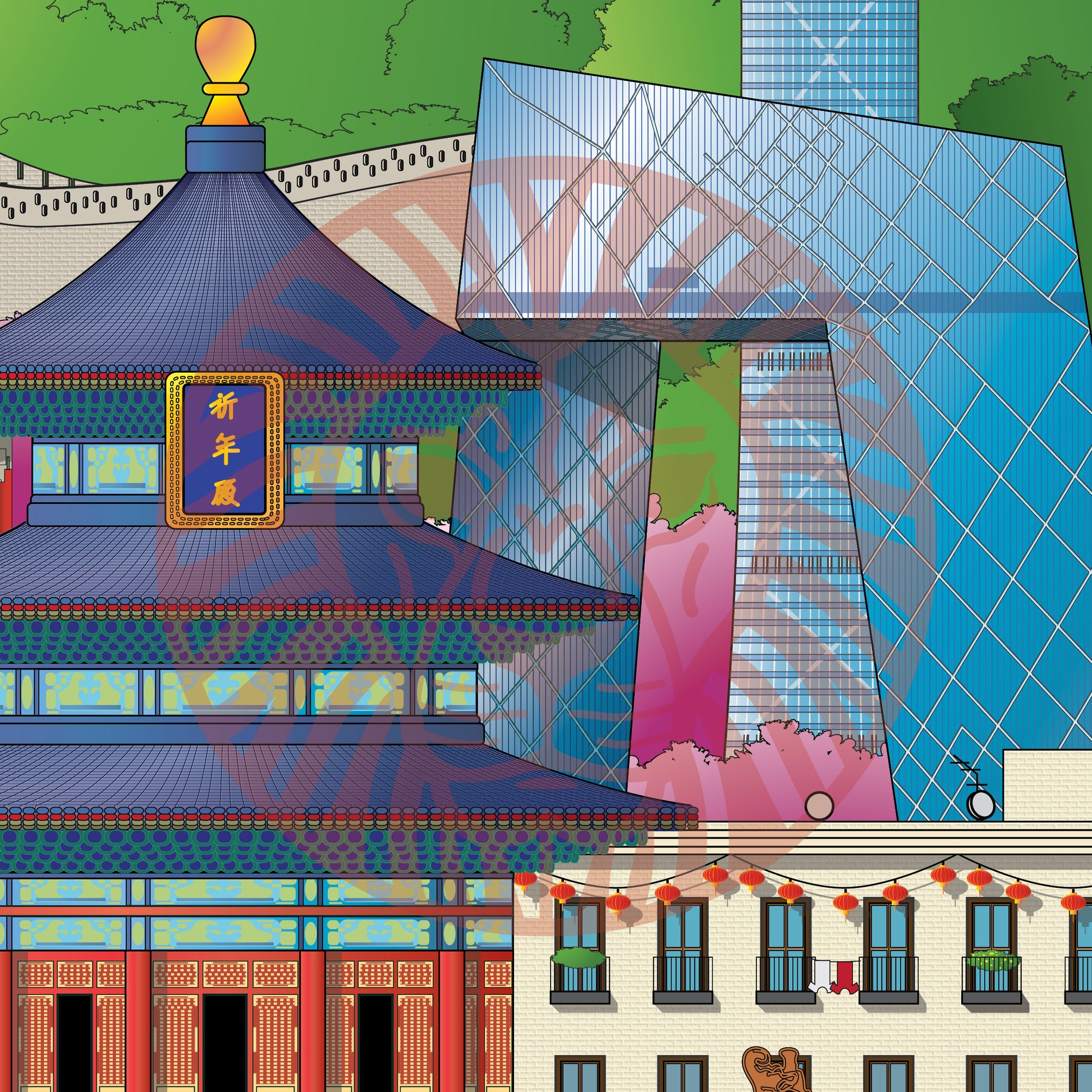 The Summer Palace, Temple of Heaven, CCTV Headquarters, The National Stadium, Beijing Apartment, Gate of Heaven-Sent Pacification, Tiananmen Square, Confucius Statue from the Beijing Temple of Confucius, Guardian Lions,