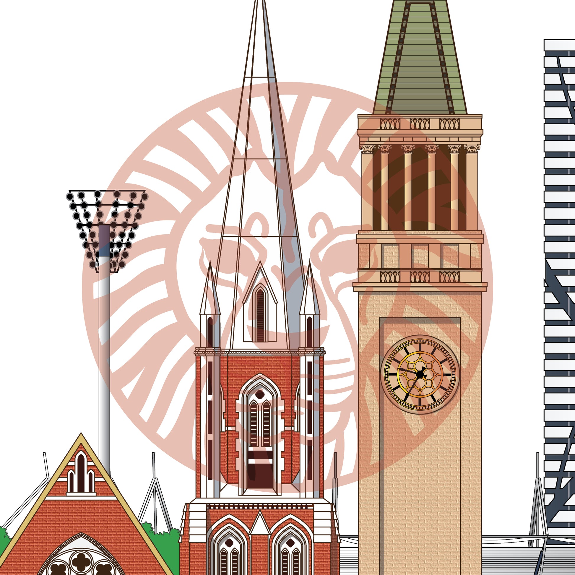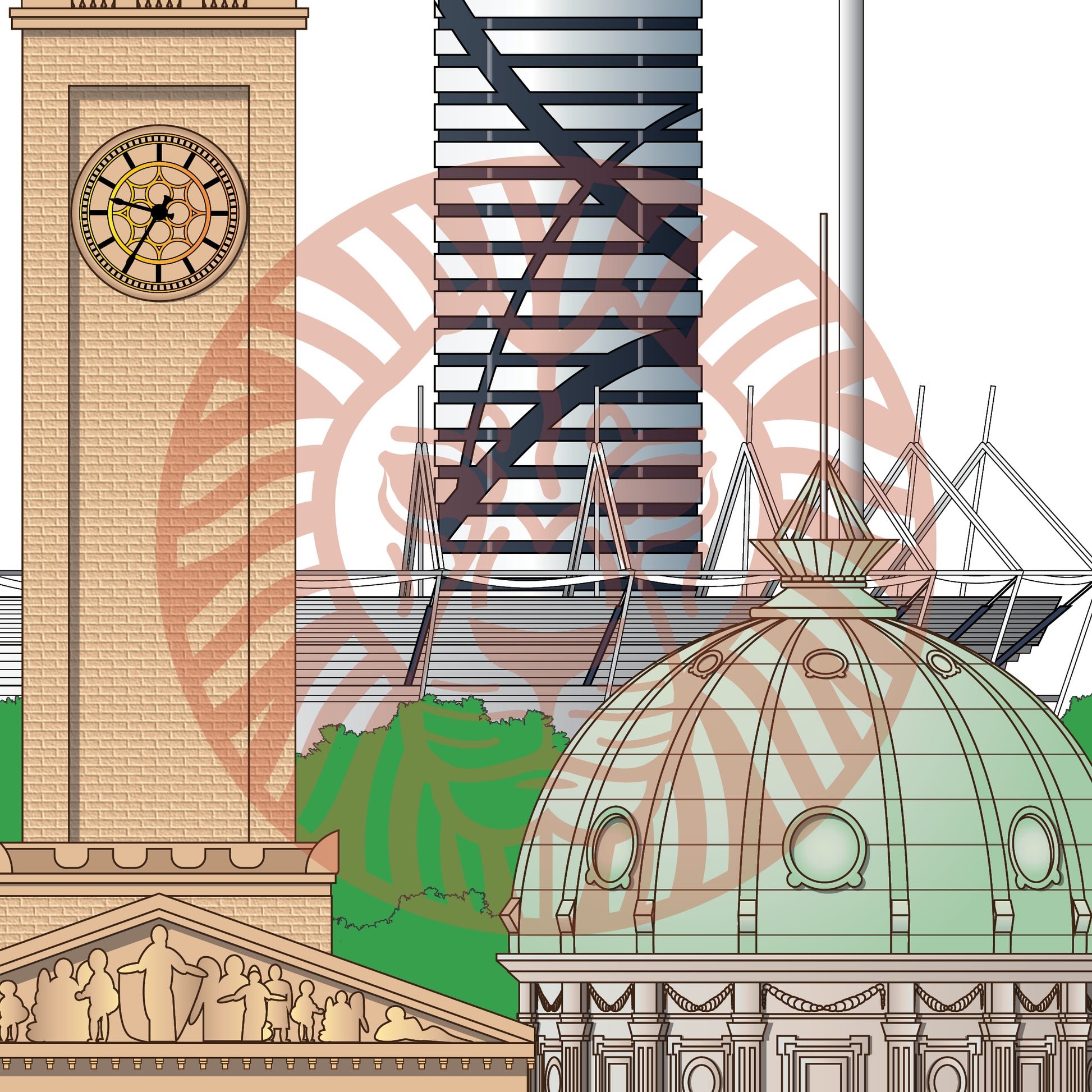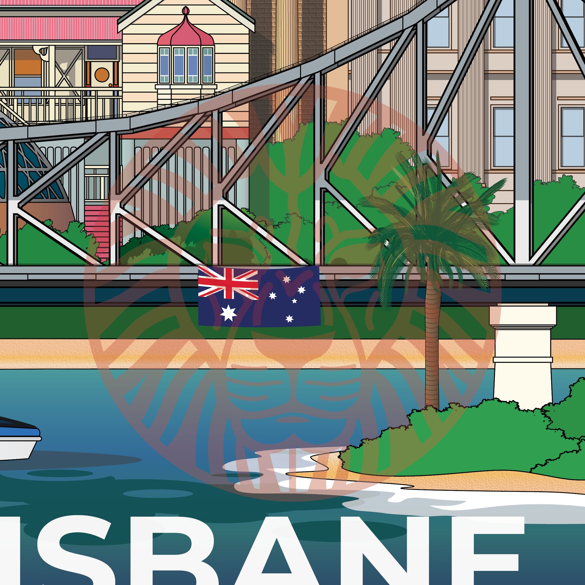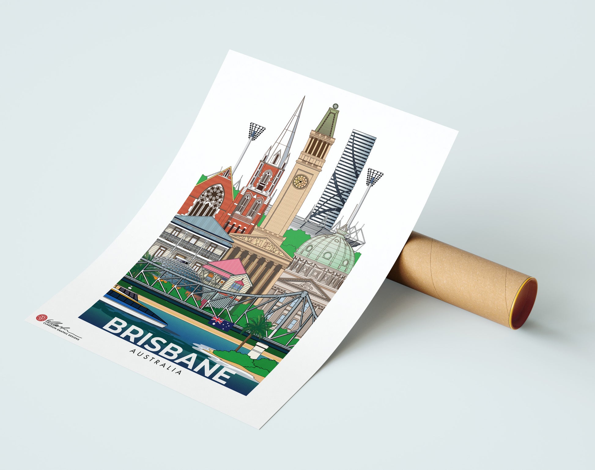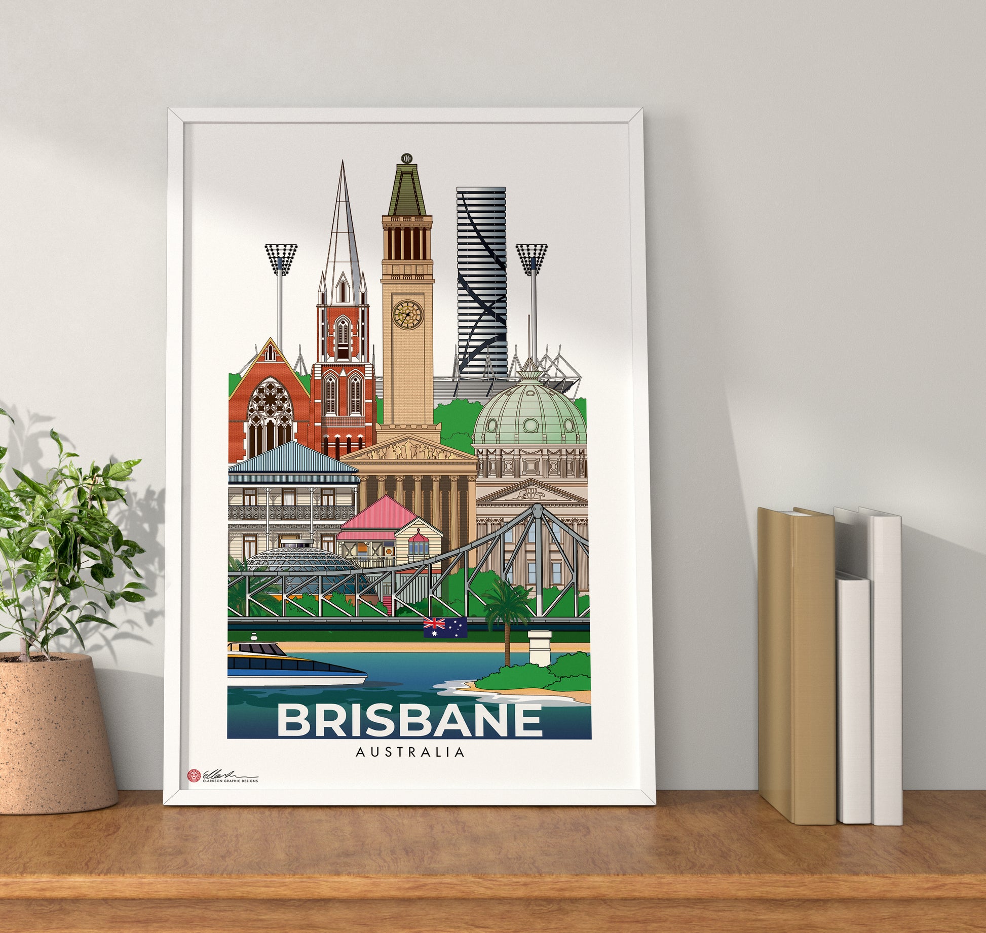 Albert Street Uniting Church, Town Hall, Infinity Tower, The Gabba, Brisbane Terrace/suburban houses, Brisbane City Botanic Gardens, Customs House, Story Bridge, Brisbane River, Brisbane River Ferry.