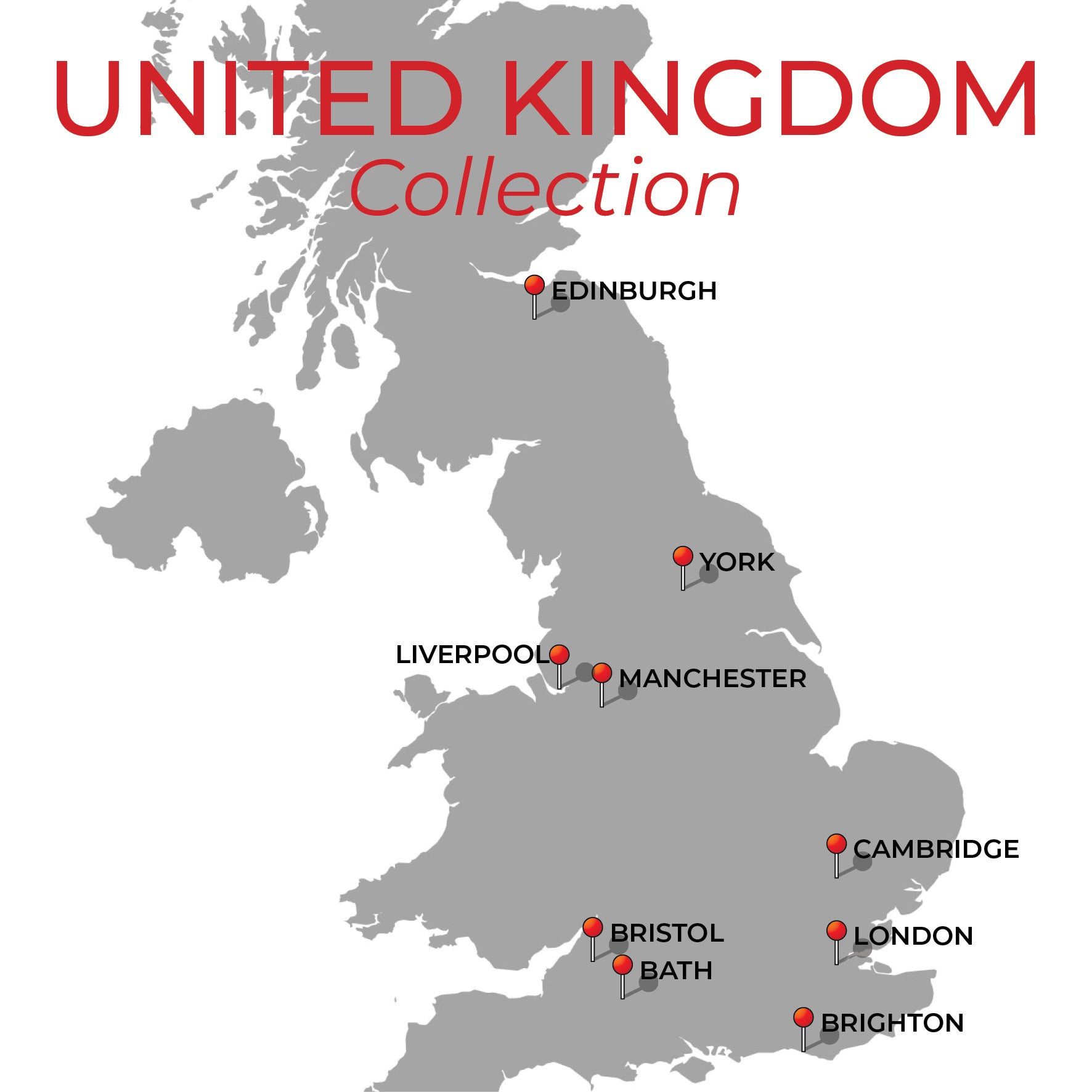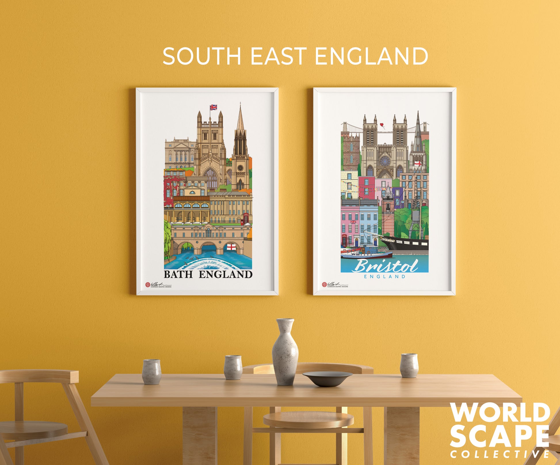 Clifton Suspension Bridge, Goldney Hall Gothic Tower, Bristol Cathedral, St Mary's Redcliffe, Cliftonwood Crescent houses, The Paragon house, Cornwallis Crescent houses, Cabot Tower, SS Great Britain, Old Dock Crane, Bristol Harbour and Boats.