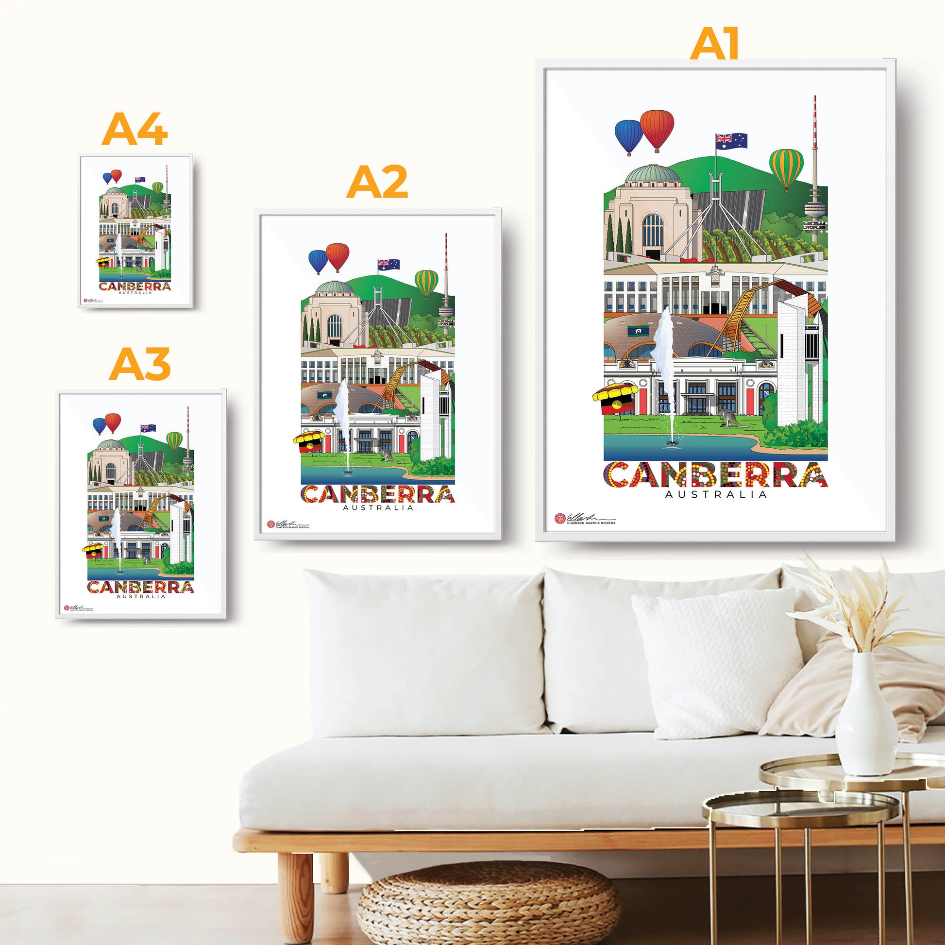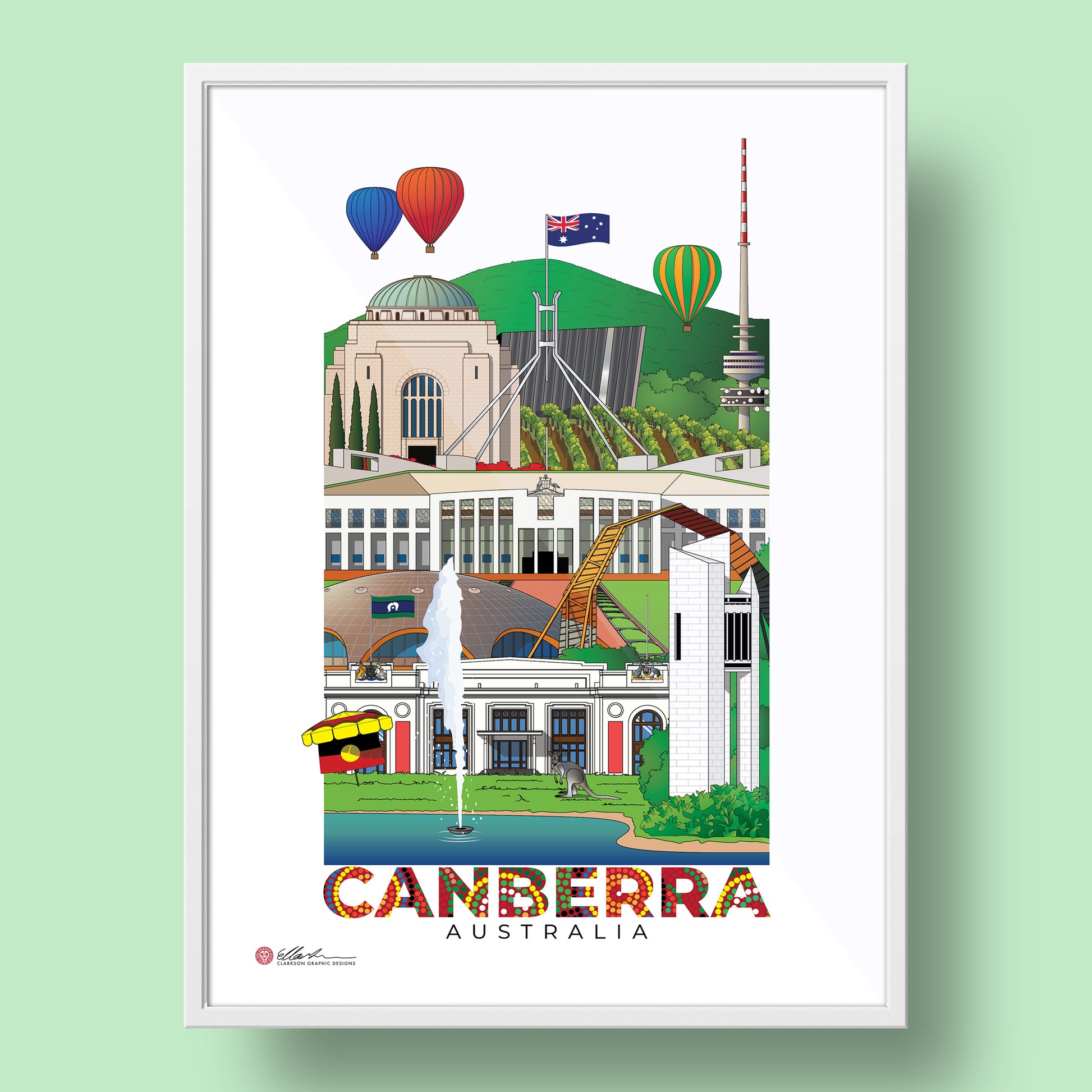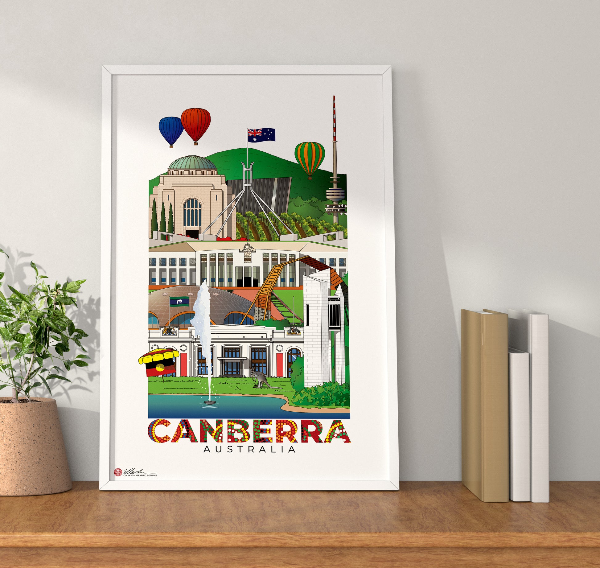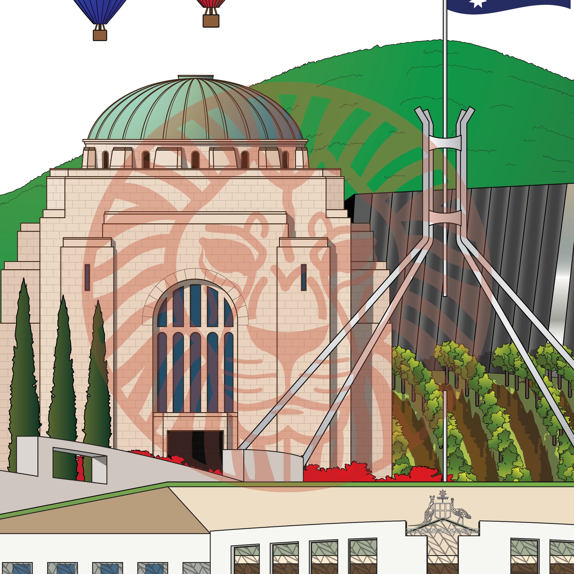Hot Air Balloons, Mount Ainslie, Australian War Memorial, National Museum of Australia, Vineyards, Telstra Tower, Parliament House, ANZAC Parade, The Shine Dome, 'The Loop' National Museum of Australia Gardens, Old Parliament House, National Carillion, Lake Burley Griffin and Fountain.