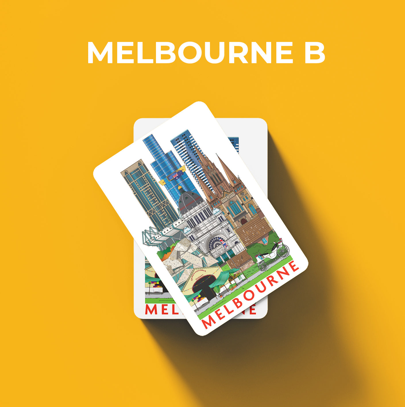 Each pack comes as a full 54-card deck (4 suits + jokers) of playing cards decorated with 19 different designs of Australian cities mixed within each deck.