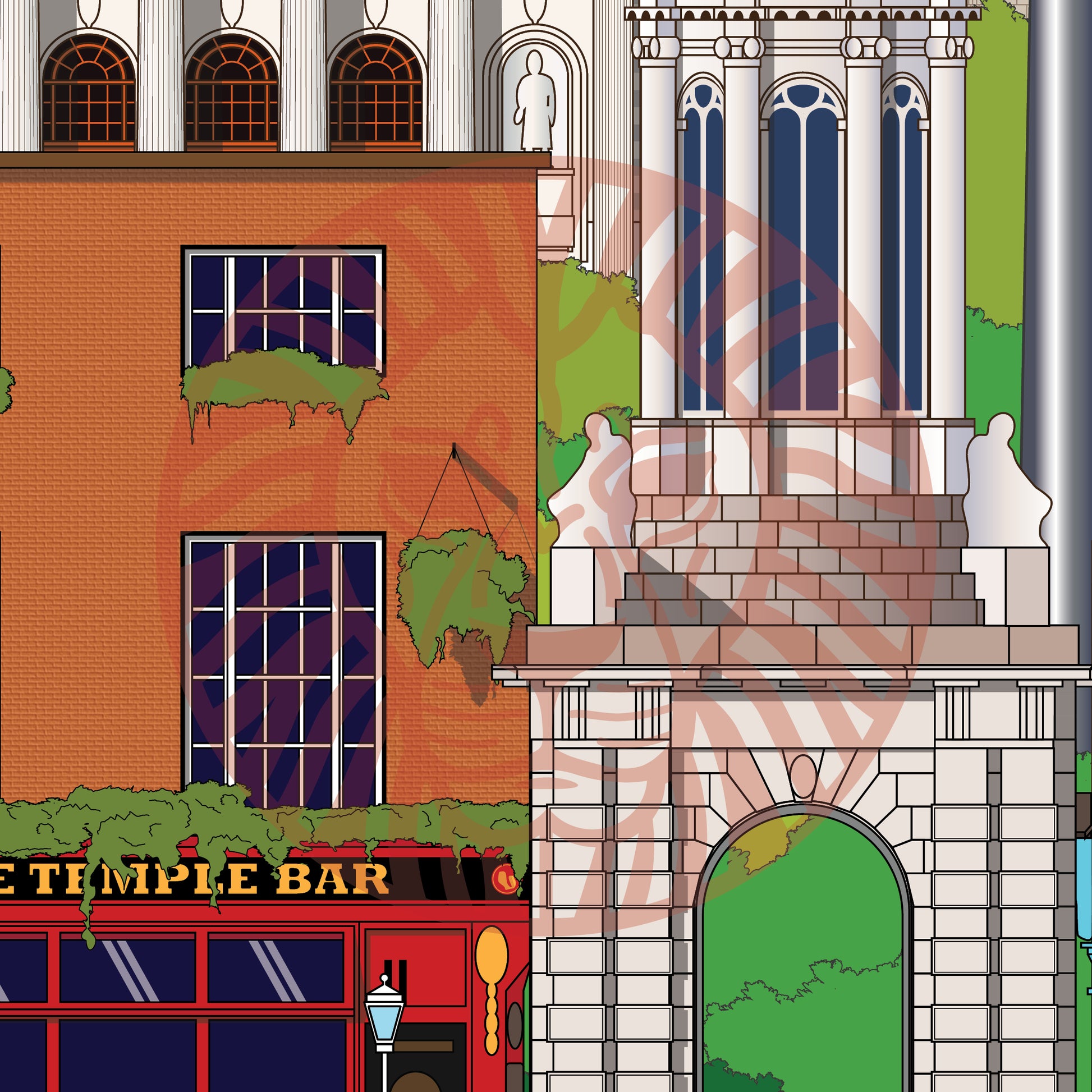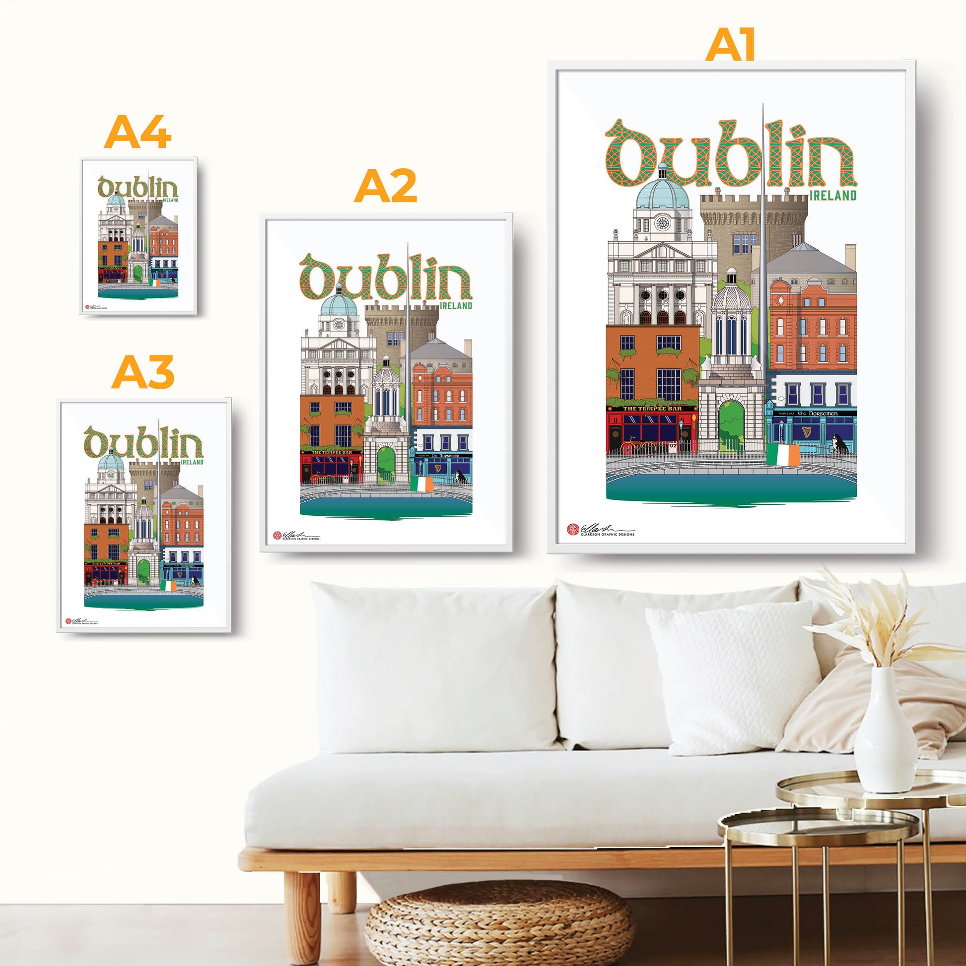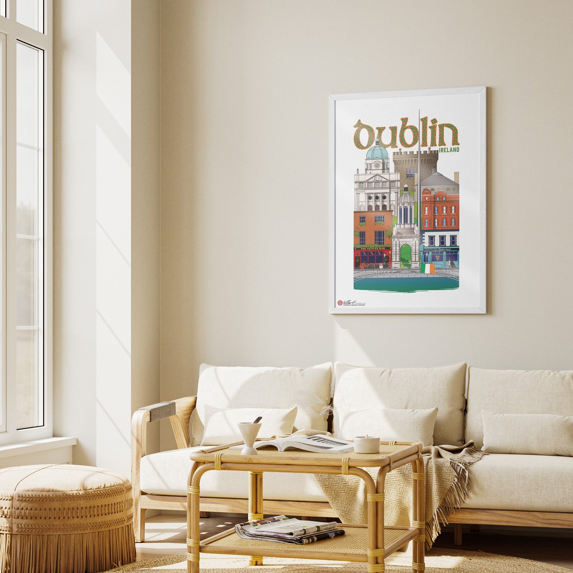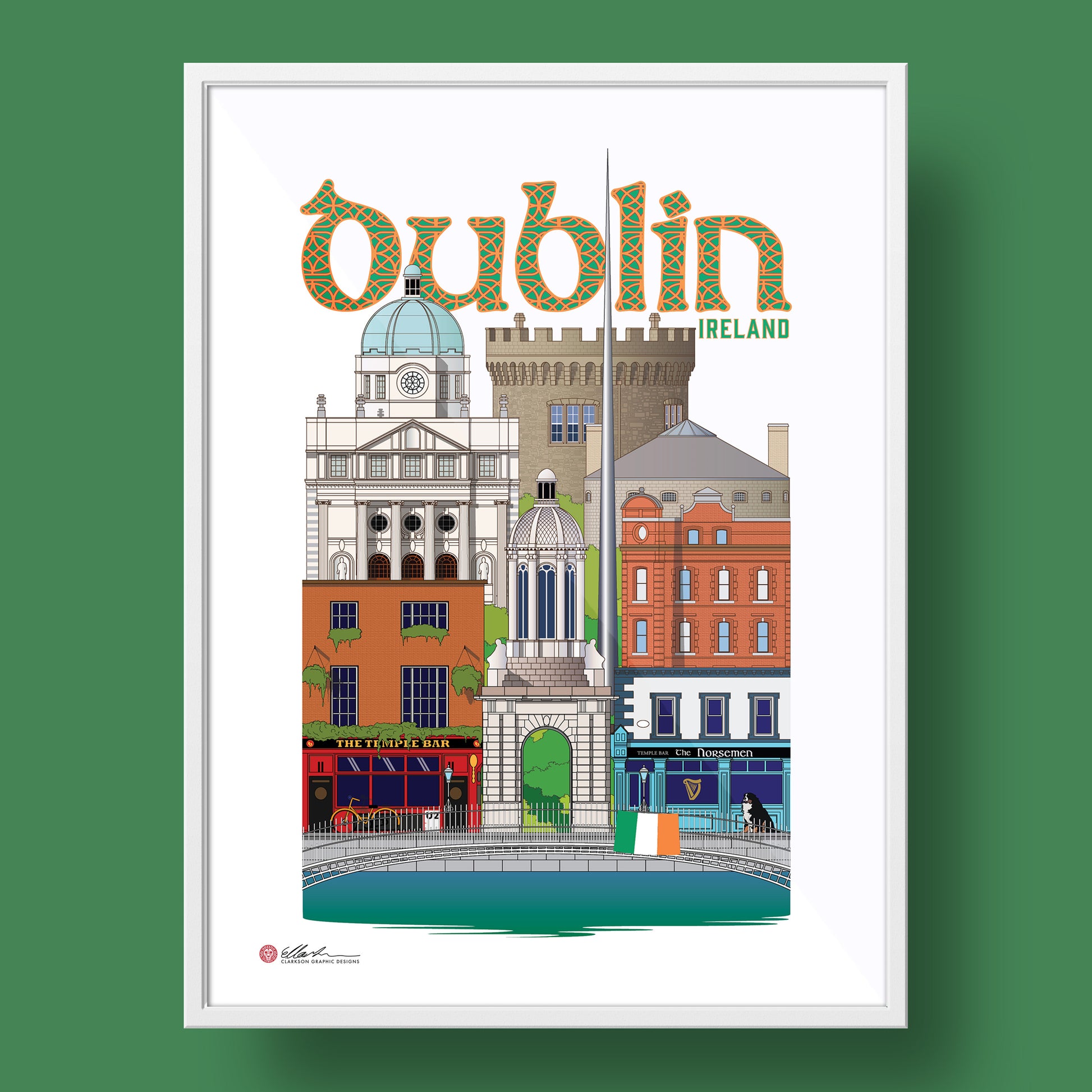 Department of the Taoiseach, Dublin Castle, Kilmainham Gaol, The Temple Bar, the Campanile of Trinity College, The Spire, The Norsemen Bar, 'Misneach' (President of Ireland Michael D. Higgins's Dog), Ha'penny Bridge, the River Liffey.