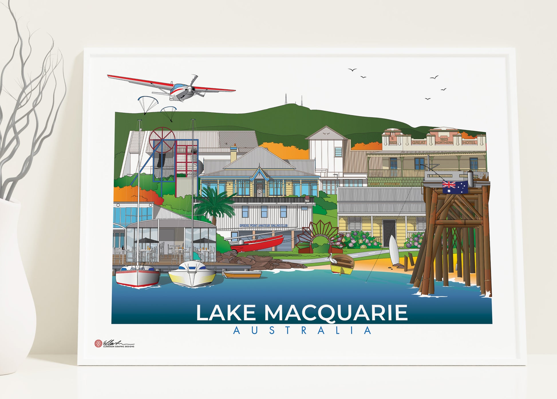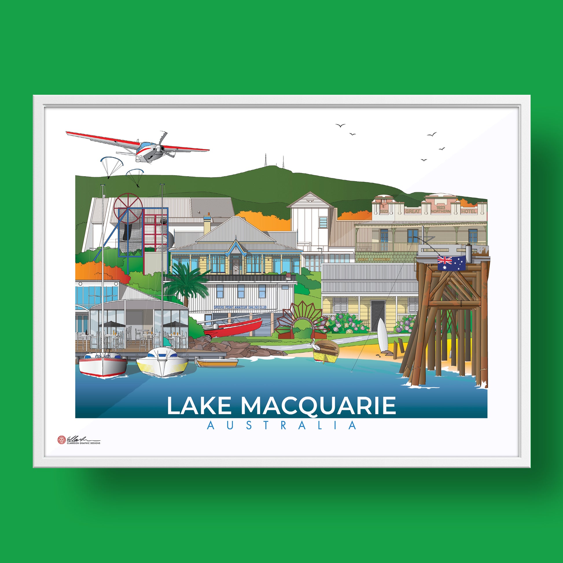 Belmont Airport Skydiving, Mnt Sugarloaf, Belmont 16s, Dobell House, The Great Northern Hotel Teralba, Speers Point Park Playground, 214 The Esplanade, Lindsley St Cottage (Catherine Hill Bay), Lake Macquarie Yacht Club, Speers Point Amateur Sailing Club, Swansea RSL War Memorial, Catherine Hill Bay Jetty.