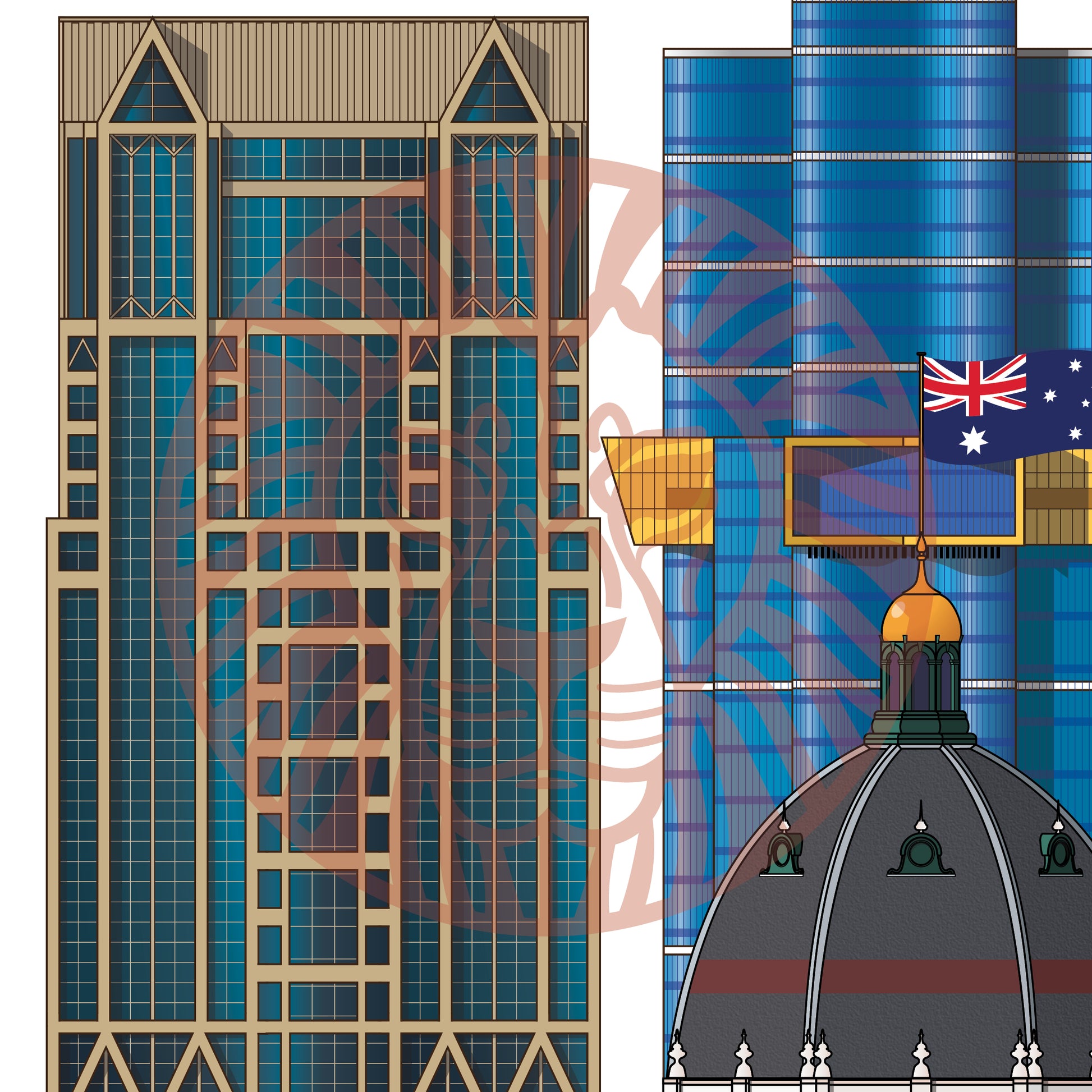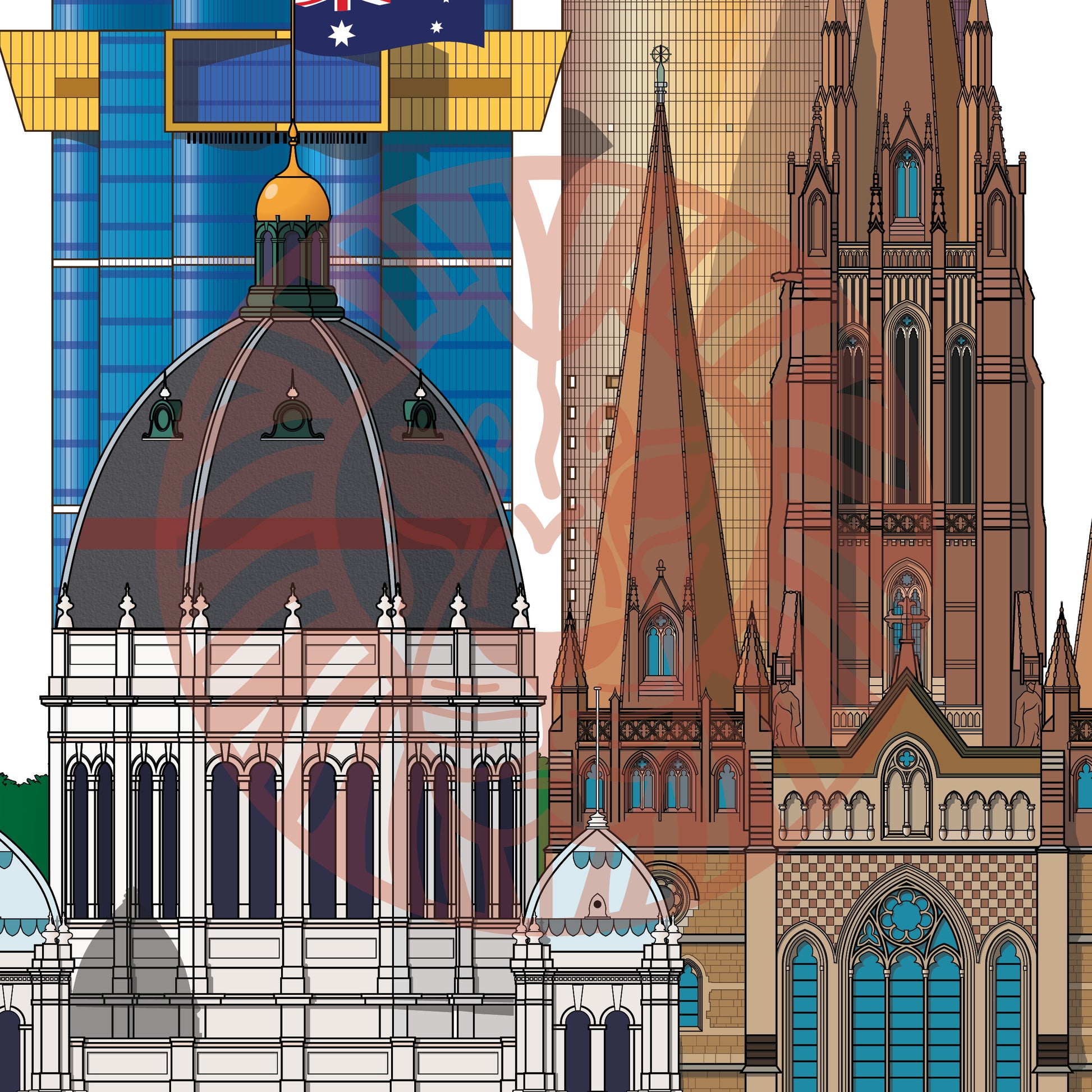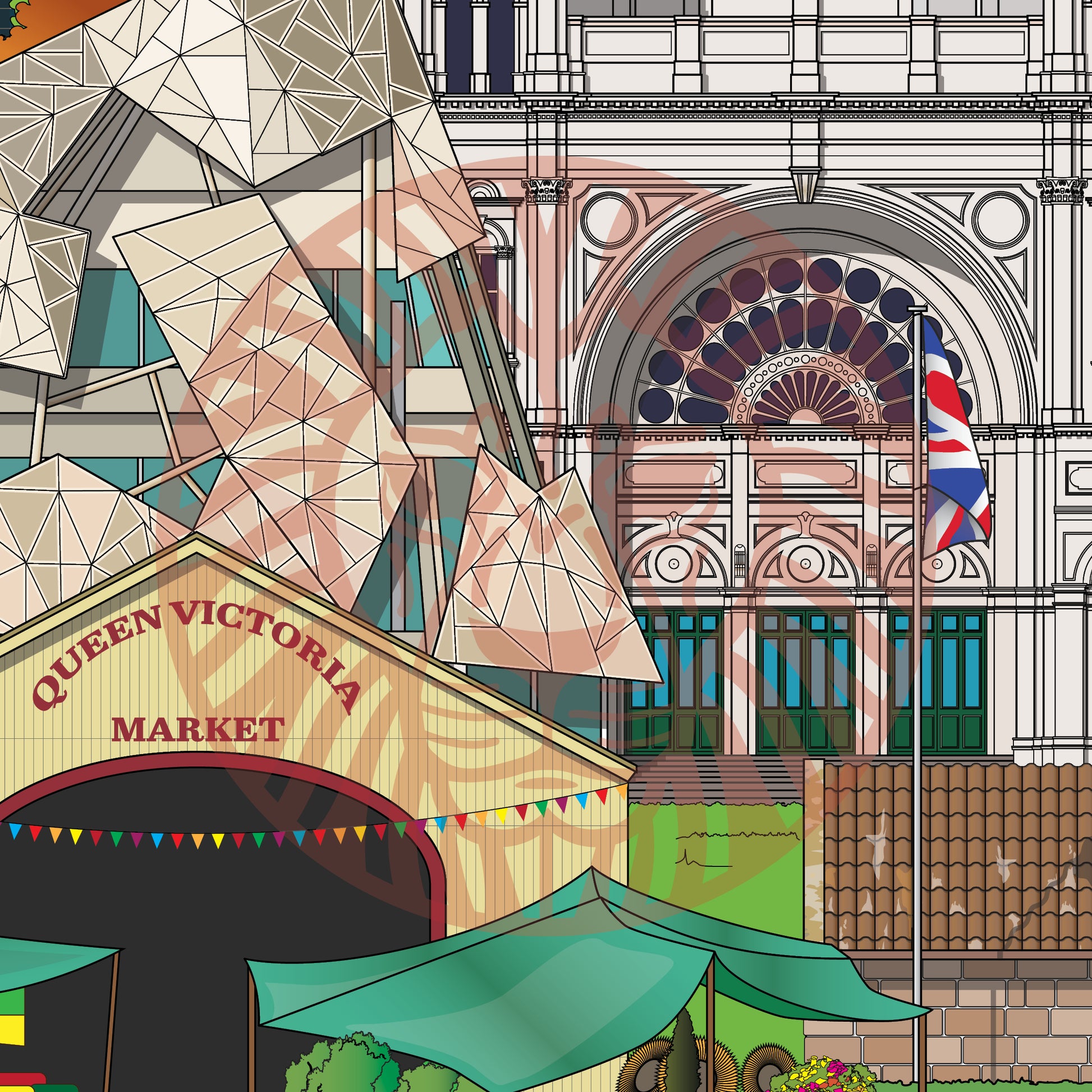 100 Queen Street, Australia 108, Vision Apartments, The MCG, Royal Exhibition Building, St Paul's Cathedral, ACMU Melbourne (Fed Square), Cook's Cottage, Queen Victoria Market, Horse Drawn Carriage.