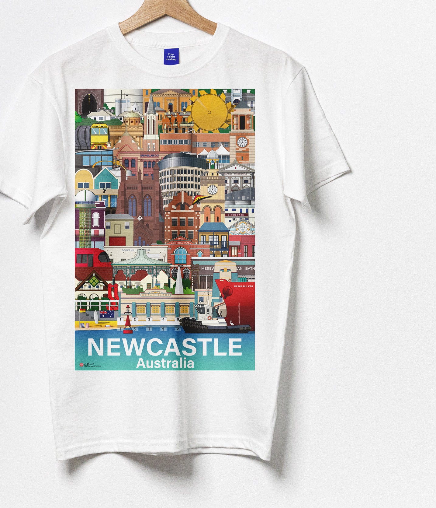 Wear Newcastle in style with this beautiful Australian-made t-shirt. Packed with dozens of landmarks from across our great city, this stand-out t-shirt will be the centerpiece of any wardrobe.