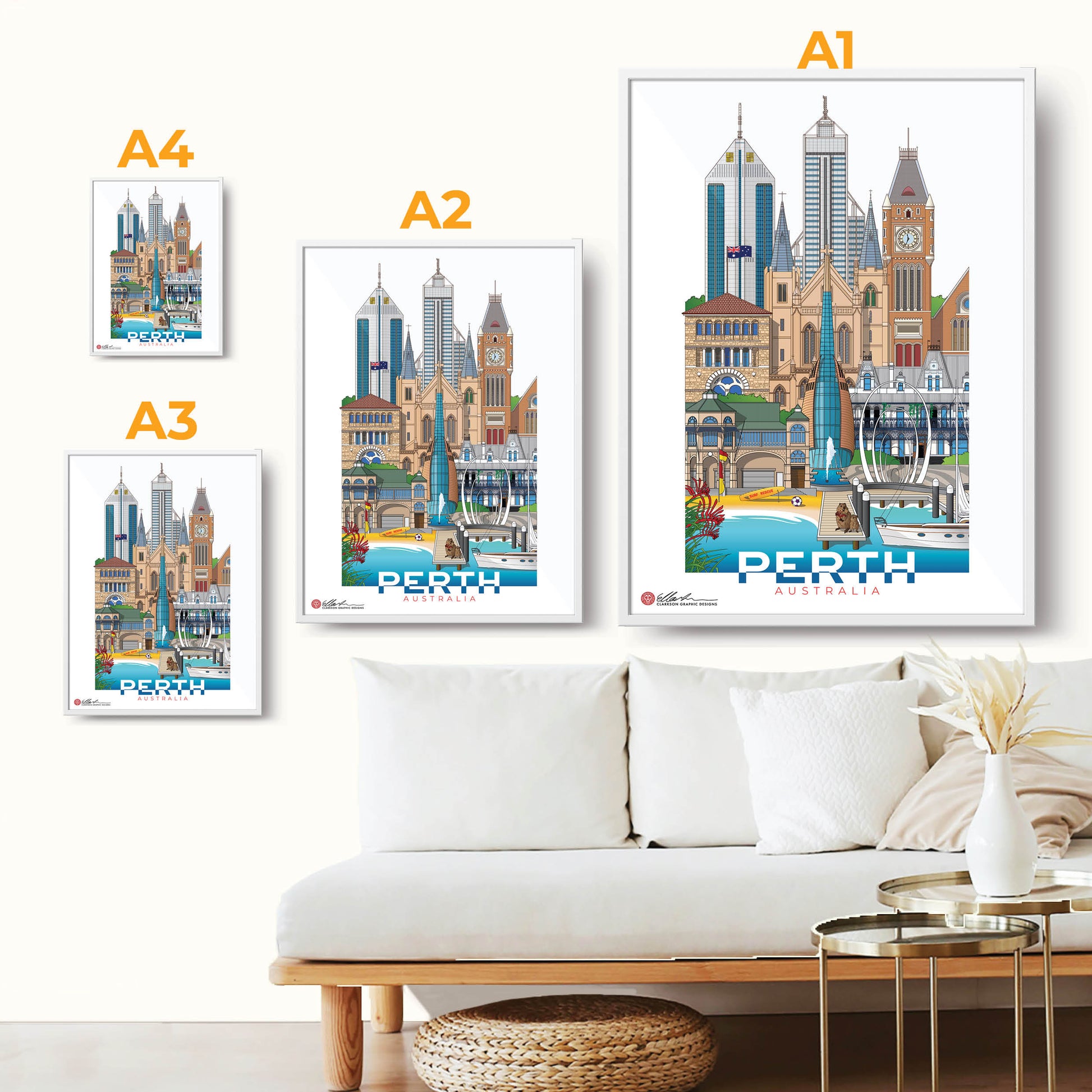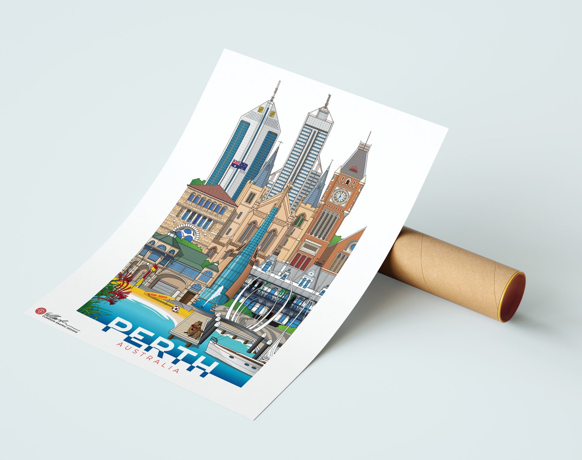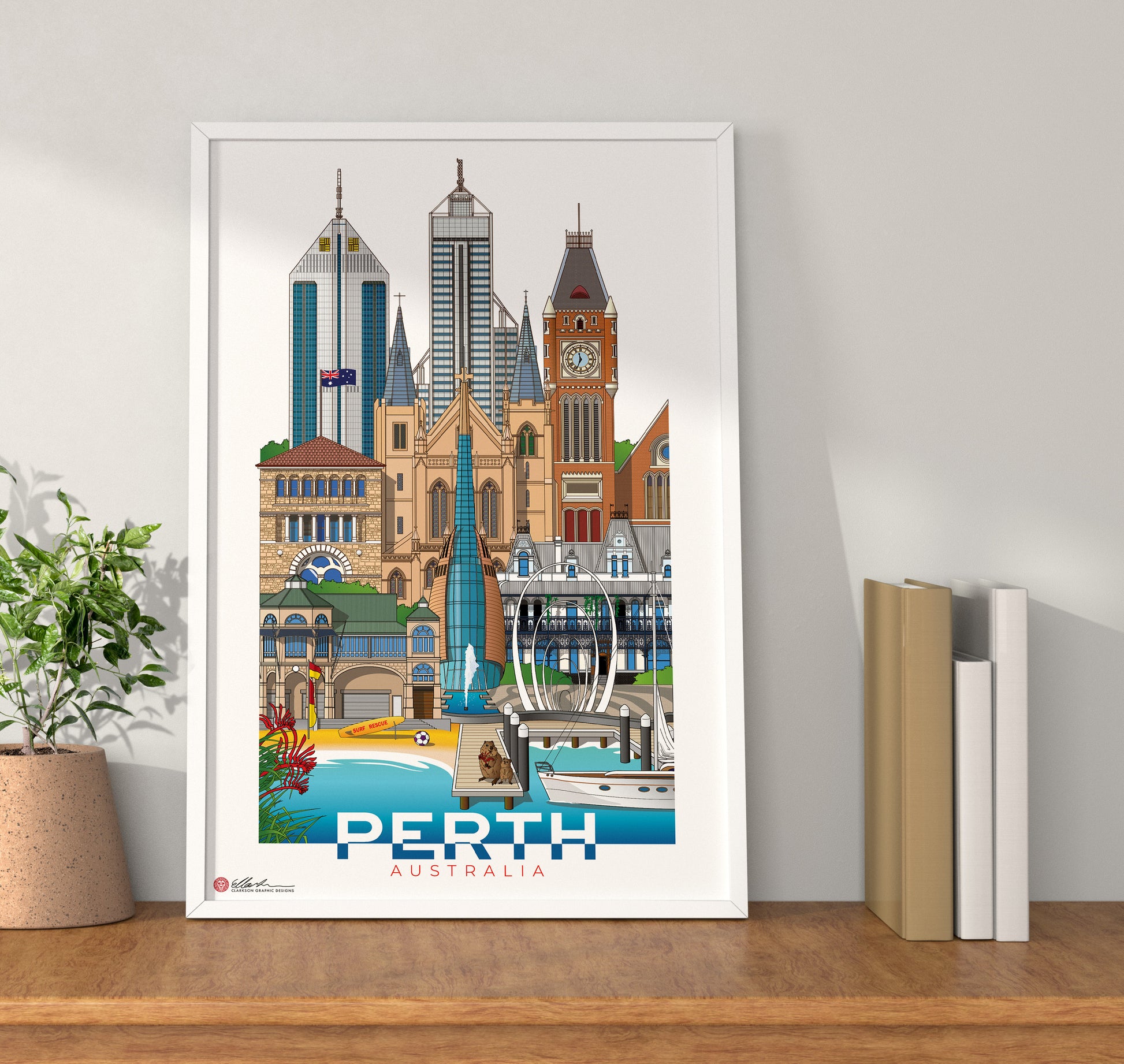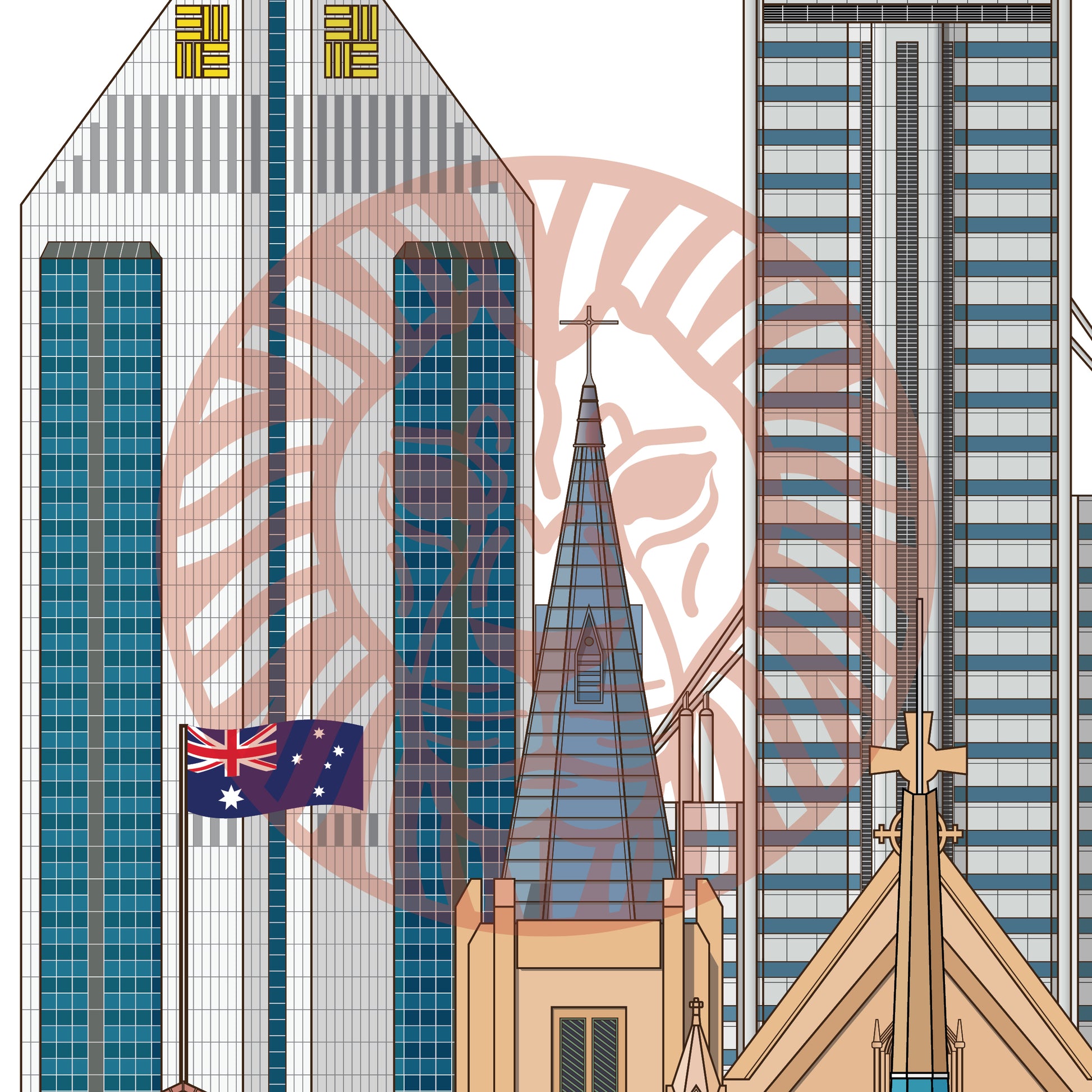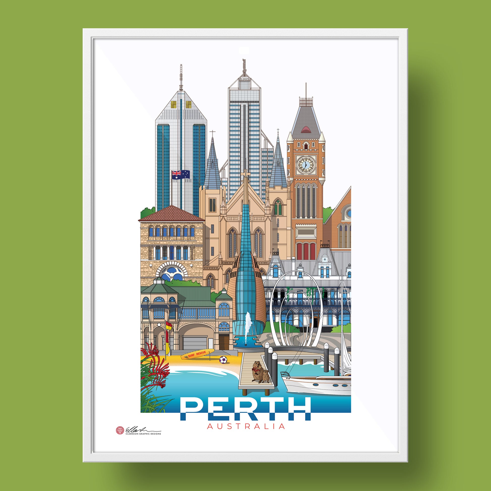108 St George's St (South32 Tower), Central Park Tower, Town Hall, Perth Mint, St Mary's Cathedral, Indiana Cottesloe Beach, The Bell Tower, Royal Perth Hotel, Elizabeth Quay and Spanda artwork, Quokkas.