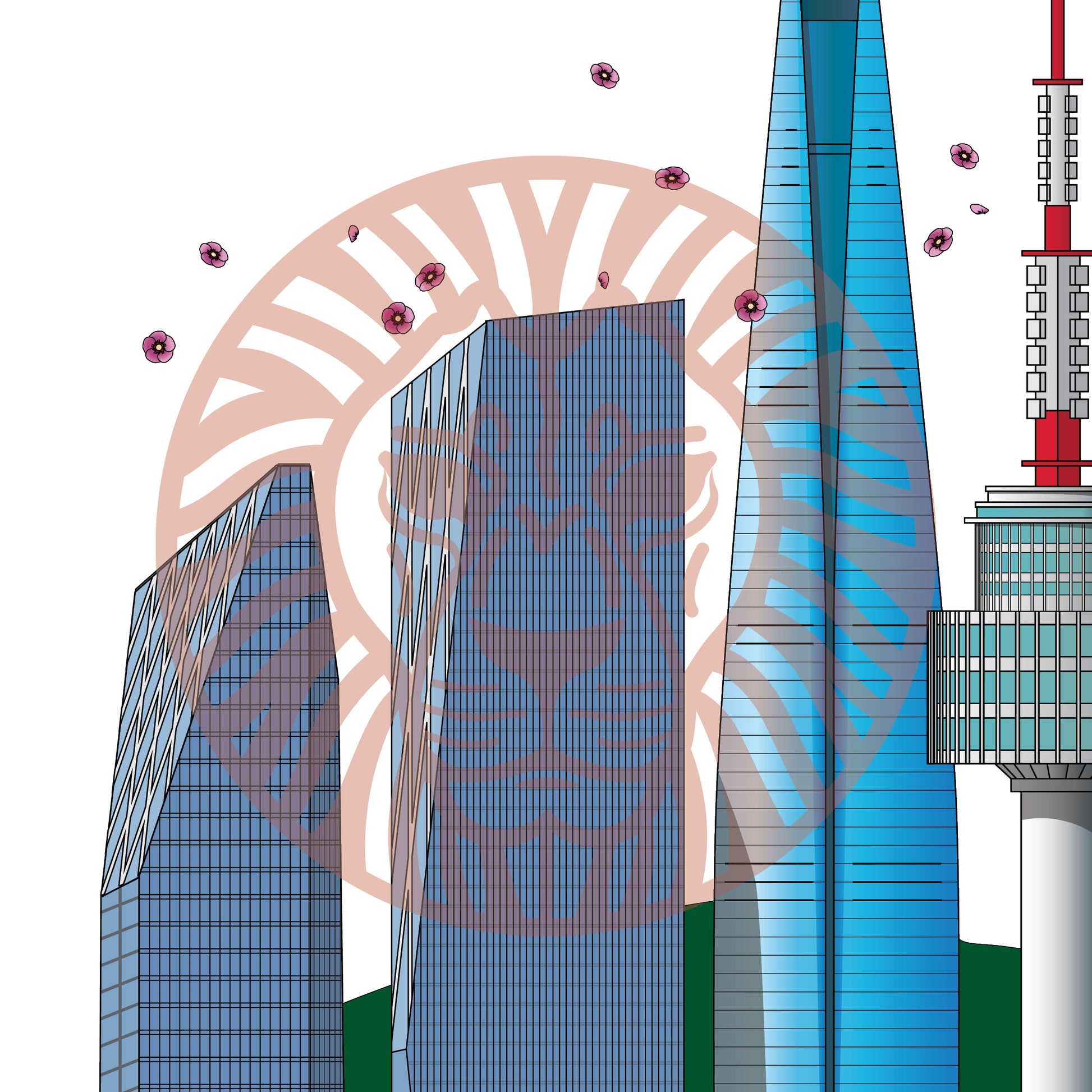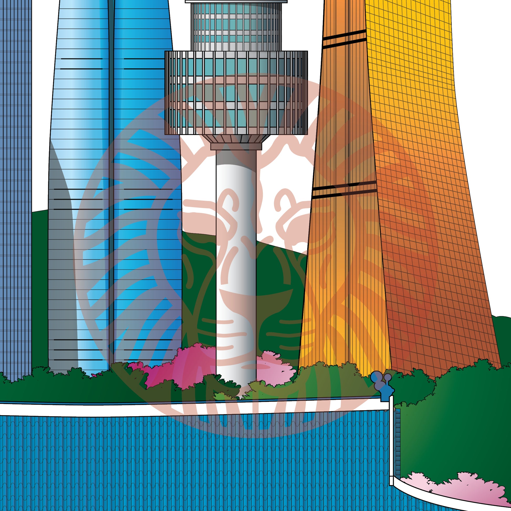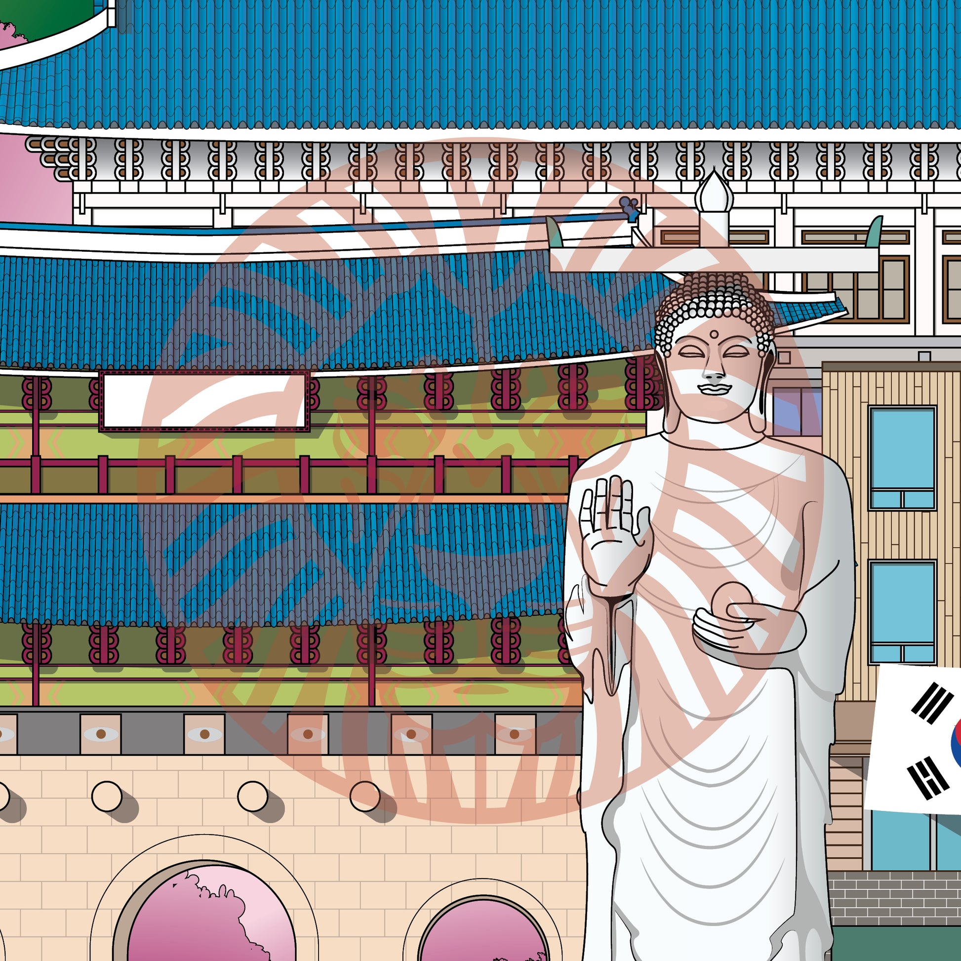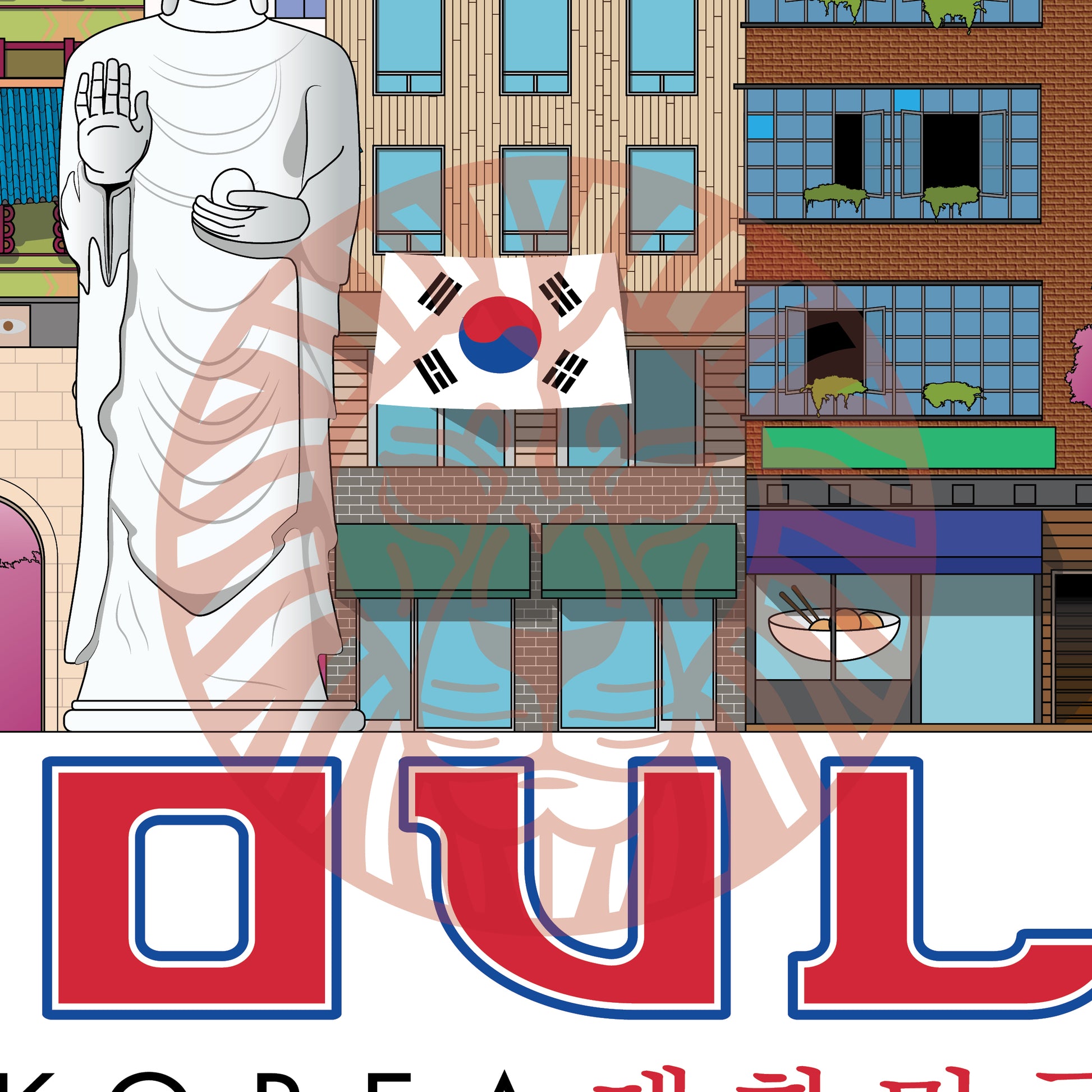 Three International Finance Centre, Lotte World Tower, N Seoul Tower, 63 Square, The Blue House, Gwanghwamun Gate, Bongeunsa Temple Statue, Insadong Apartments.