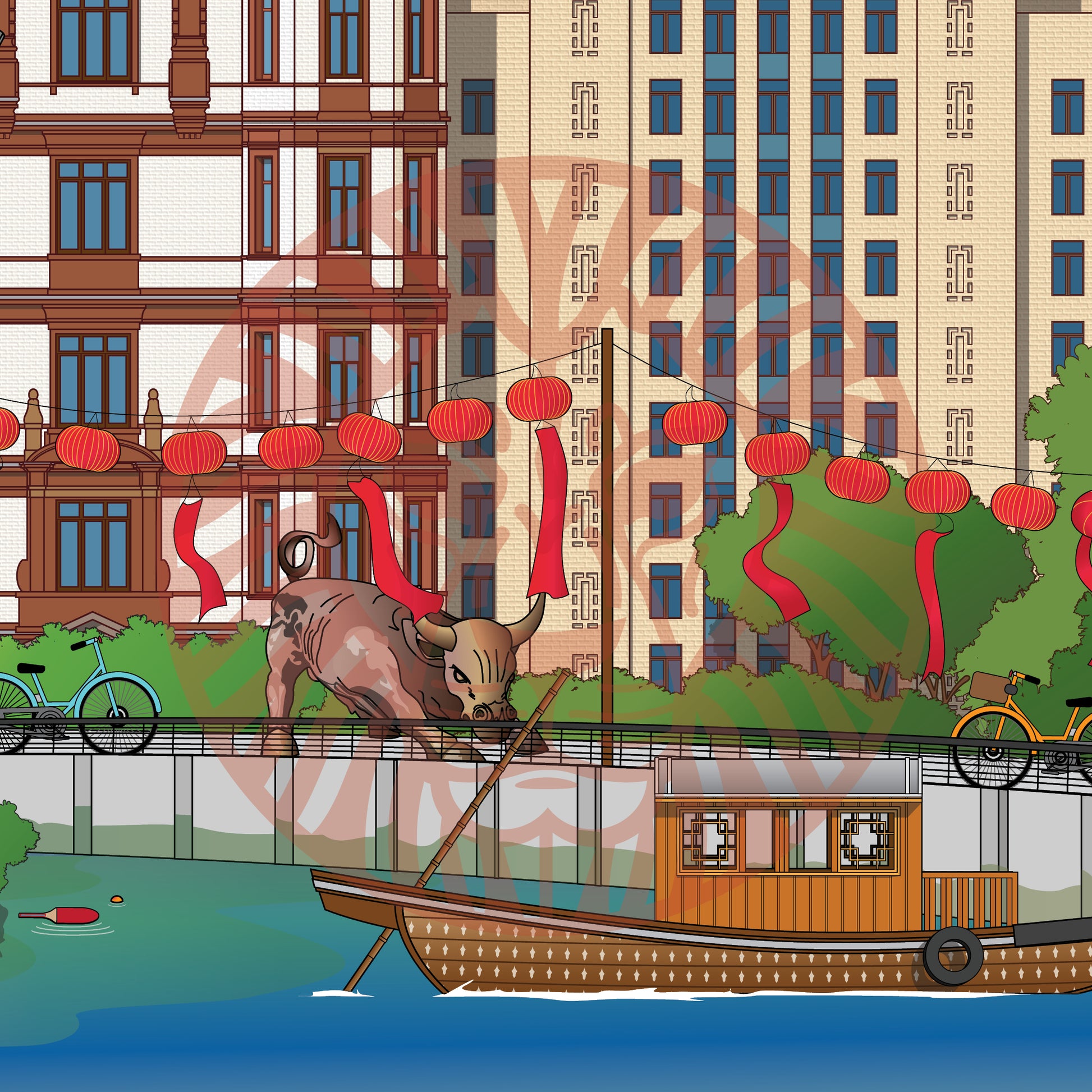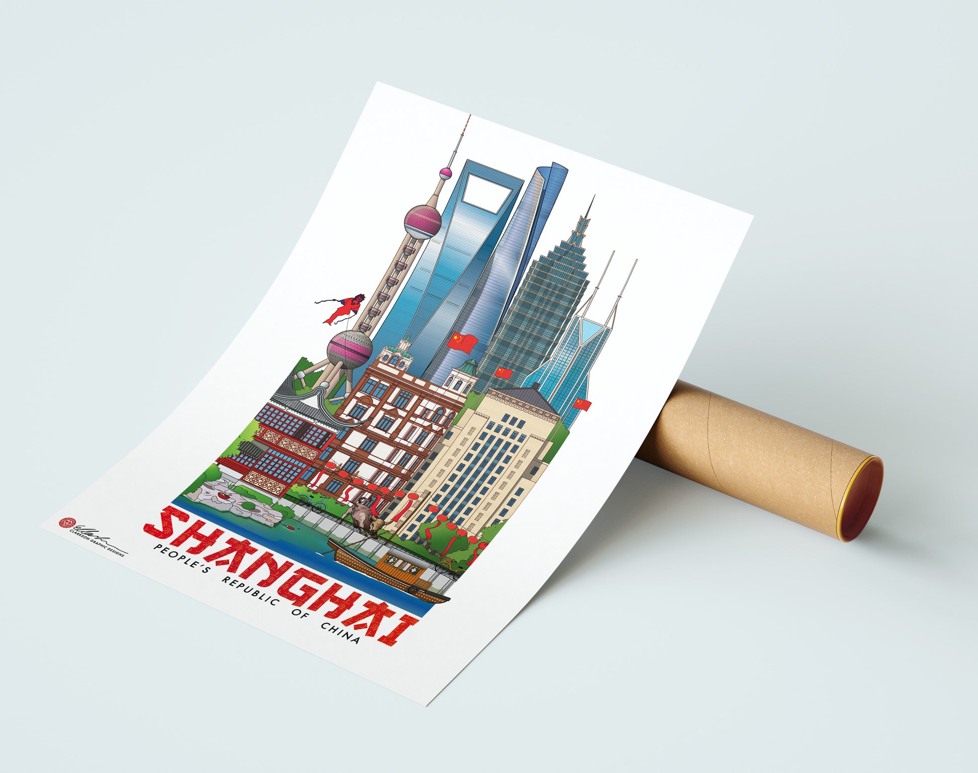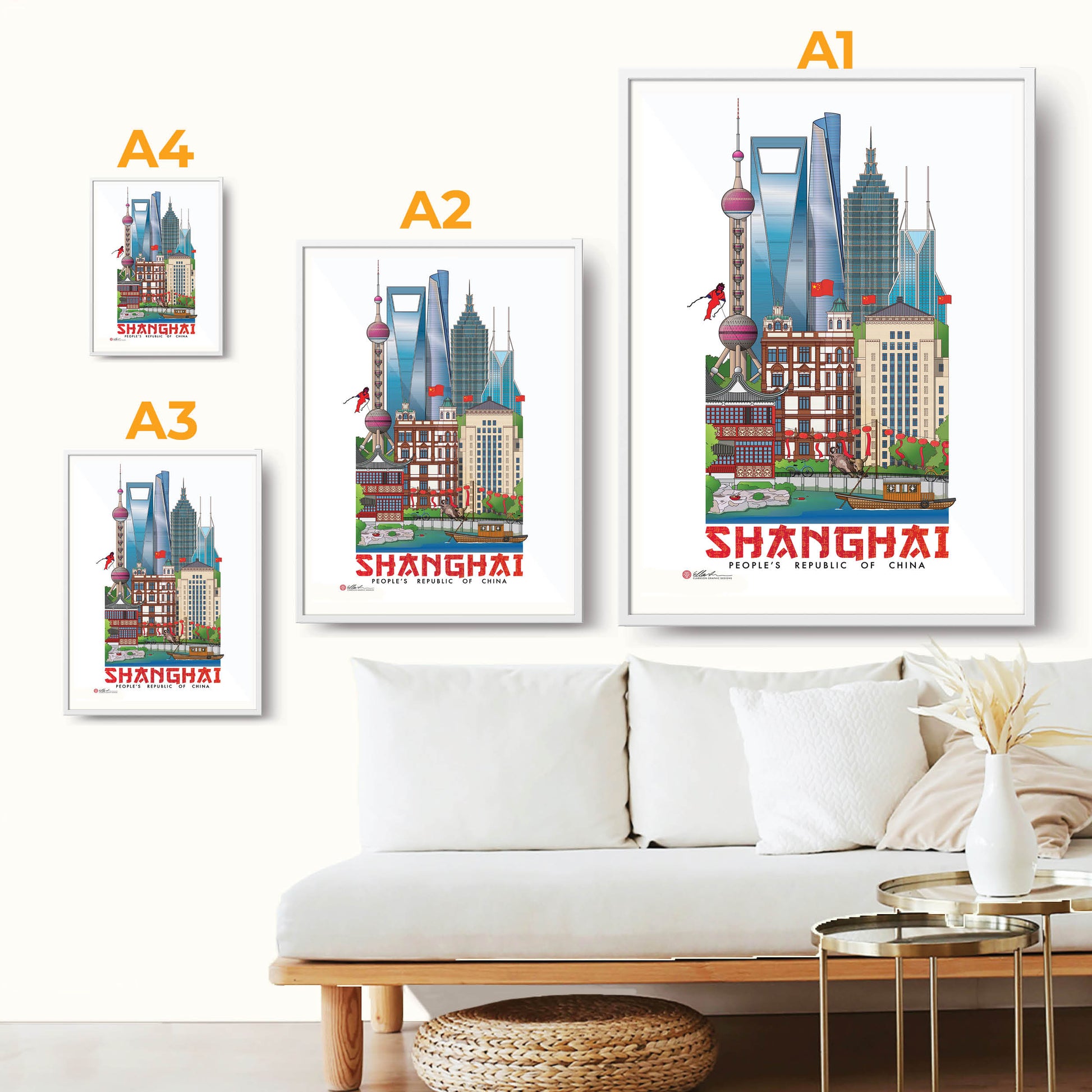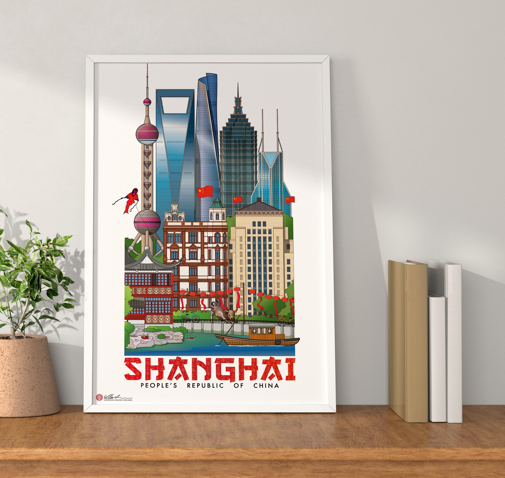 Shimao International Plaza, Chinese Kite, Bund Shorefront Buildings: The Swatch Art Peace Hotel and Bank of Shanghai Building, Yu Gardens, Huangpu River, Sampan Wooden Boat.