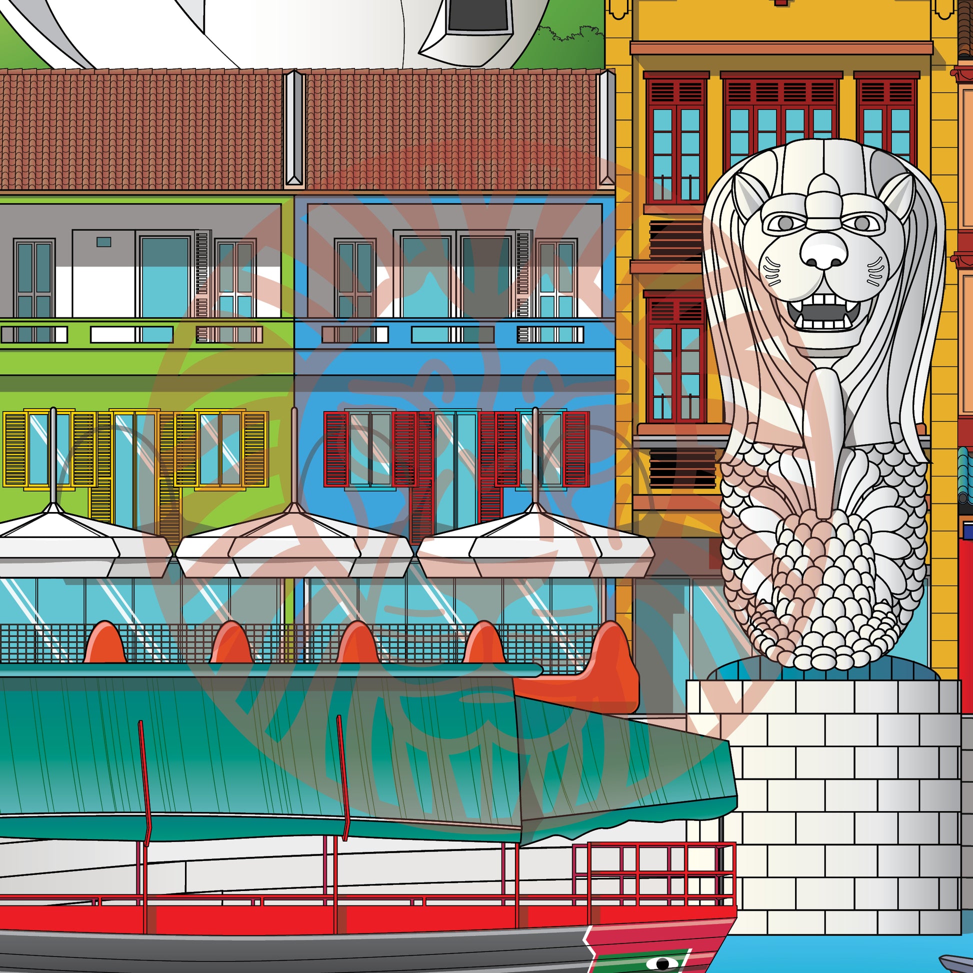 This work captures the essence of Singapore from the iconic Merlion (Mama Merlion in this image), through to the combination of old and new architecture. I haven’t visited since 2011 but the city state still holds a special place in my heart.