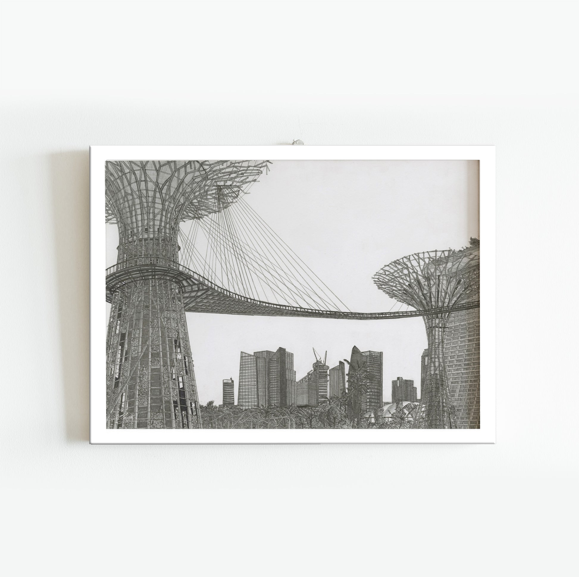 The artwork is of the Supertree Grove, looking towards the Downtown.