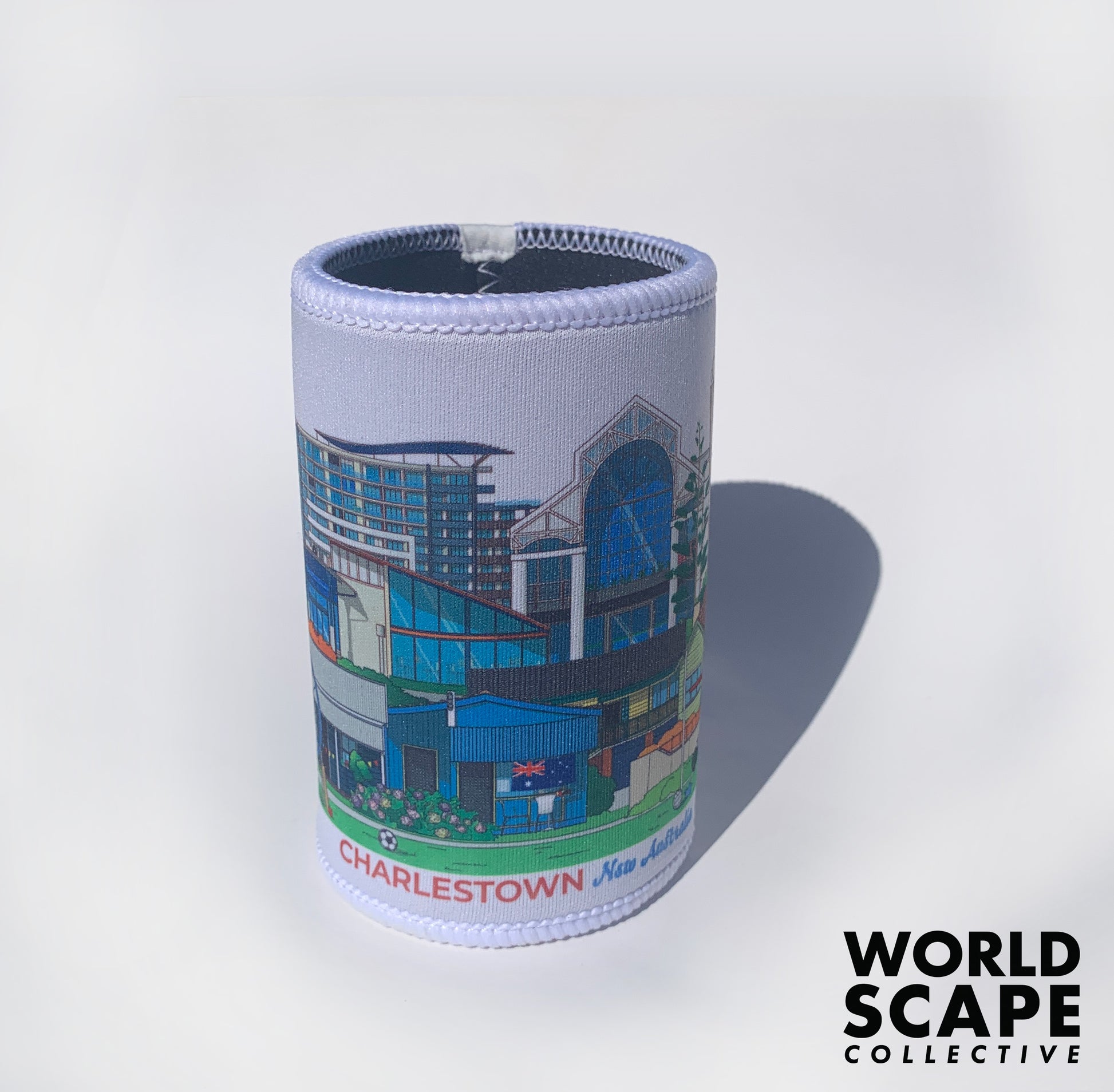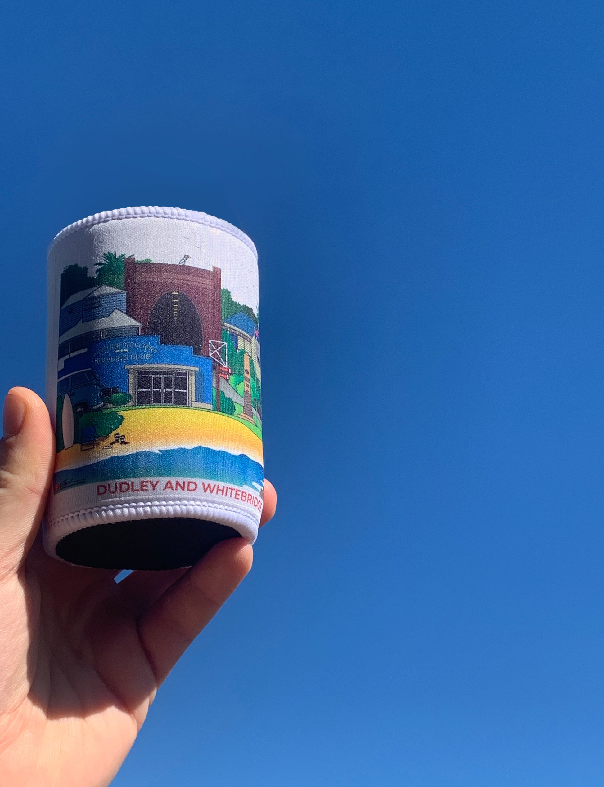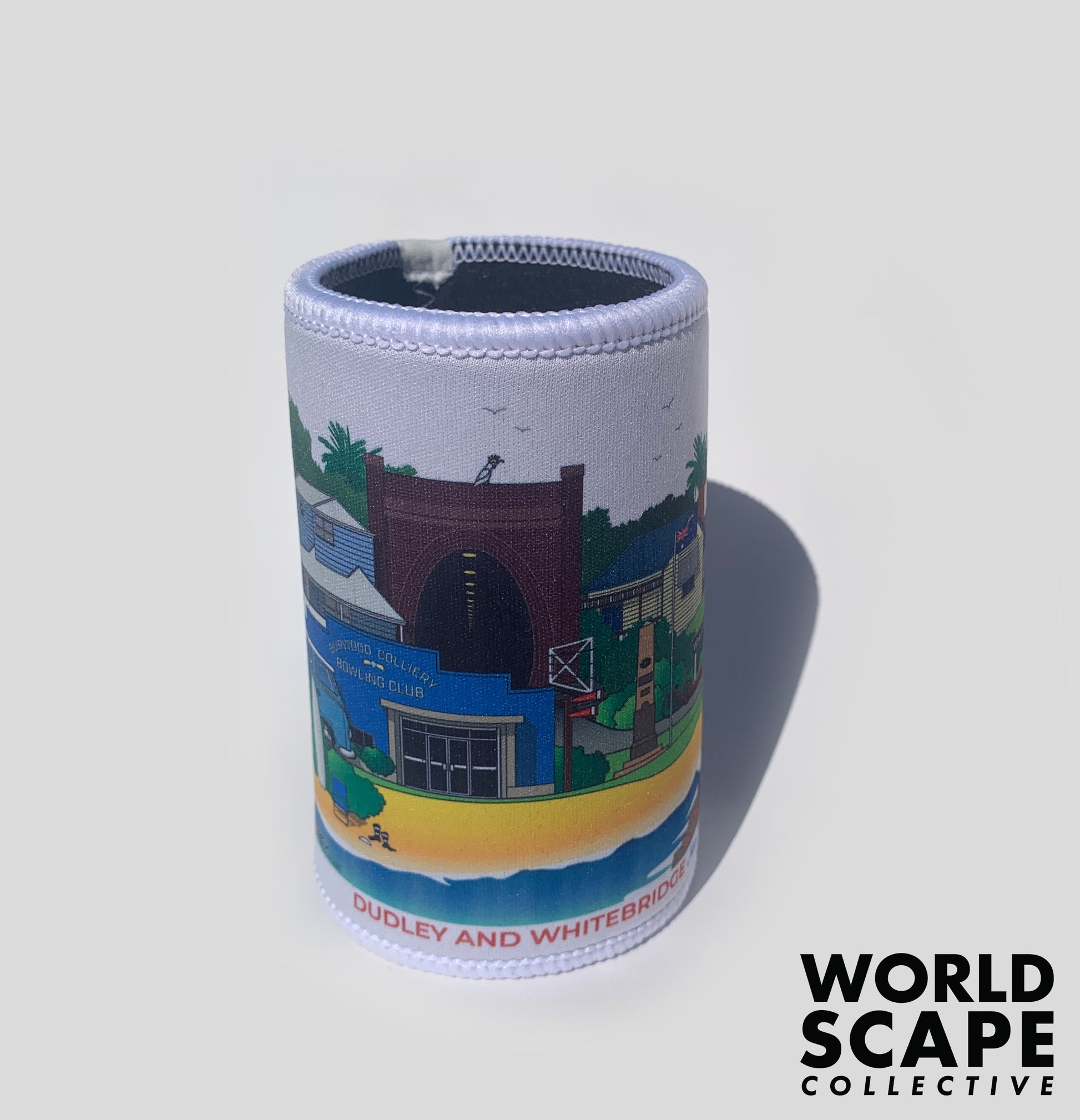 These stubby coolers fit any standard can or bottle and come with a fully textured grip base. The coolers come printed with a wrap-around design of the chosen Newcastle suburb.