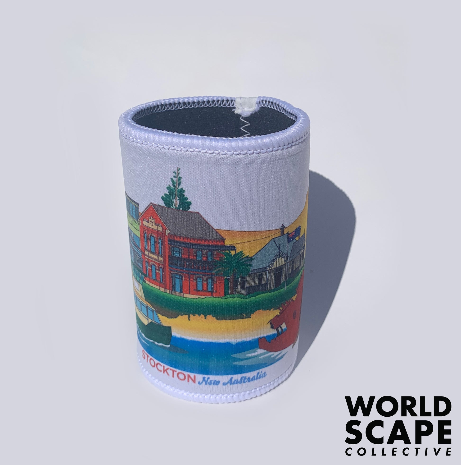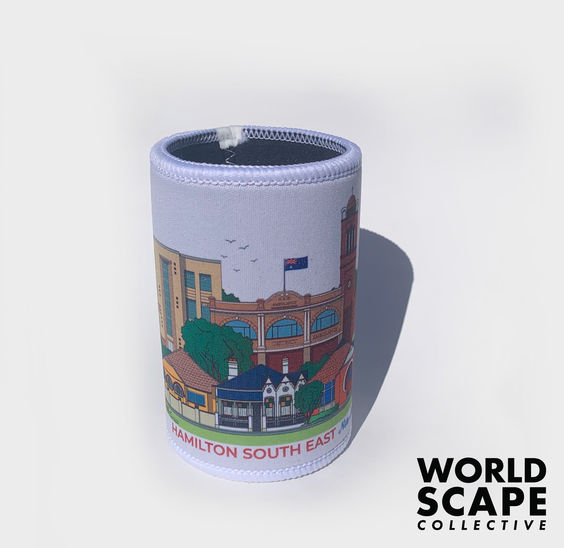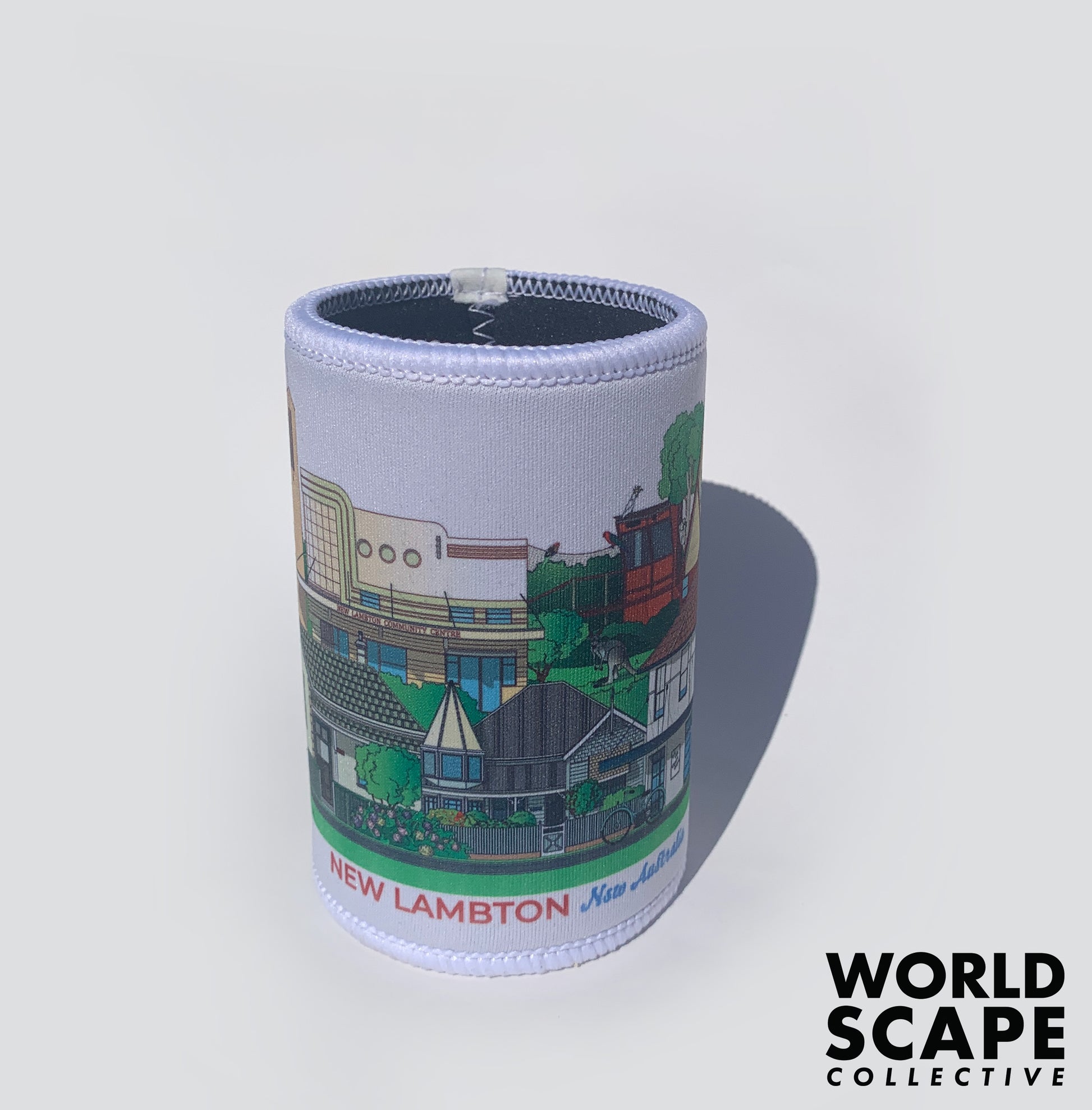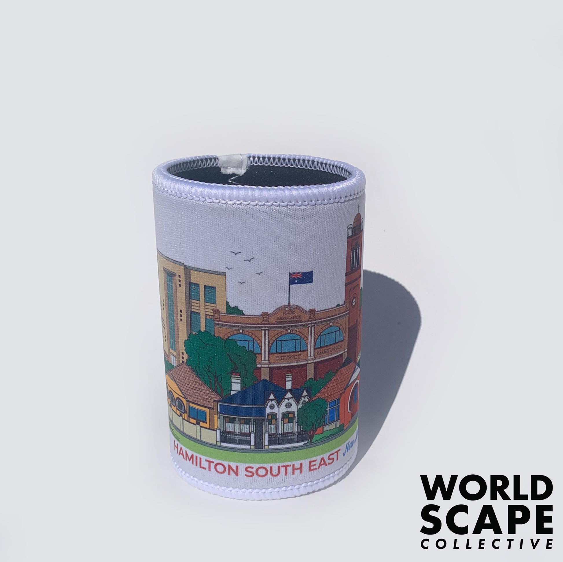 These stubby coolers fit any standard can or bottle and come with a fully textured grip base. The coolers come printed with a wrap-around design of the chosen Newcastle suburb.