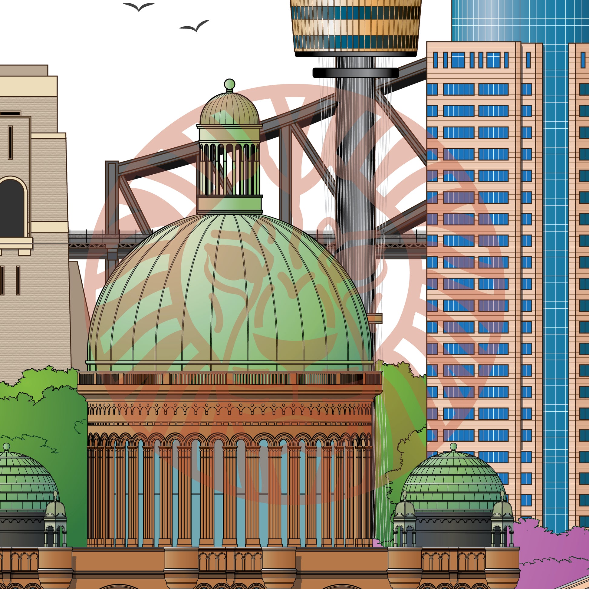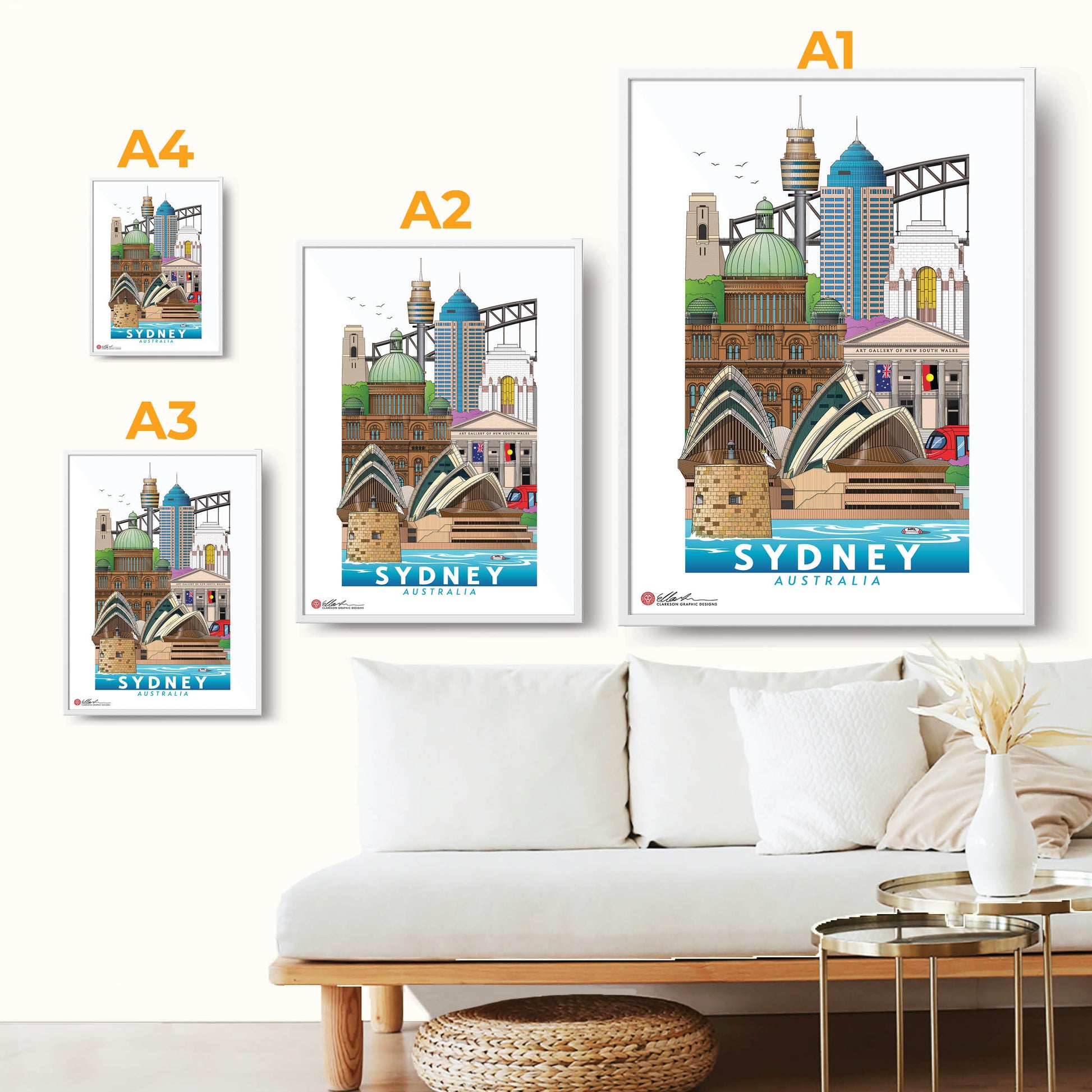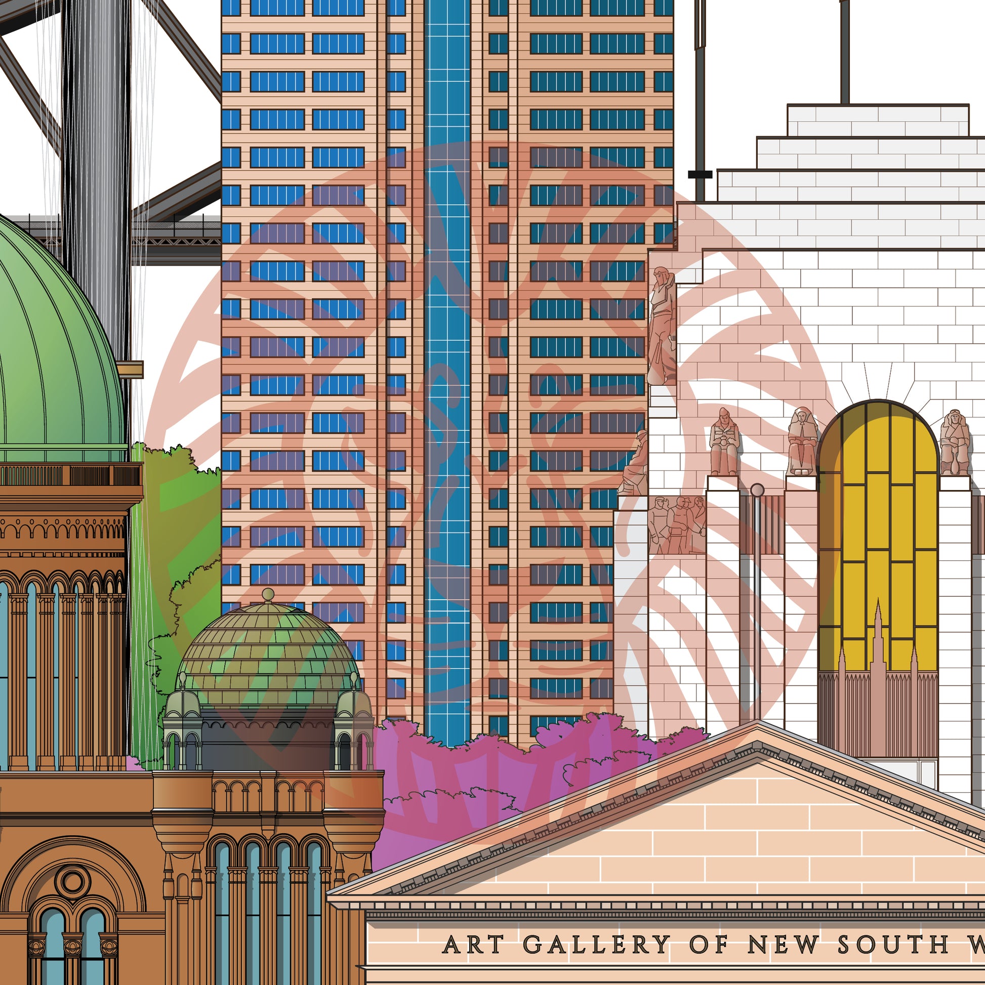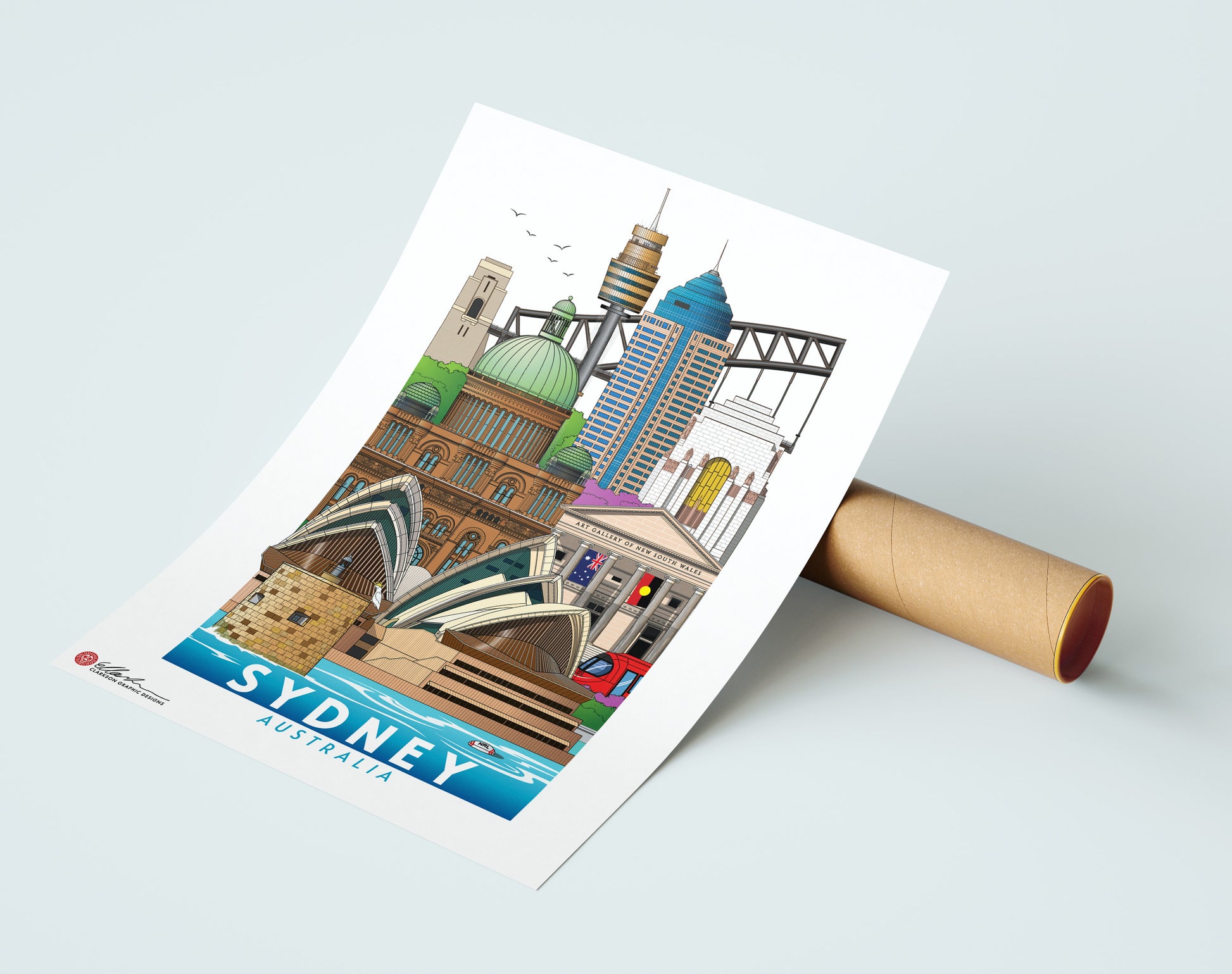 Sydney Harbour Bridge, Sydney Tower Eye, 1 O'Connell Street, ANZAC Memorial Hyde Park, Queen Victoria Building, Art Gallery of NSW, Sydney Opera House, Sydney Tram, Fort Denison, NRL Football.