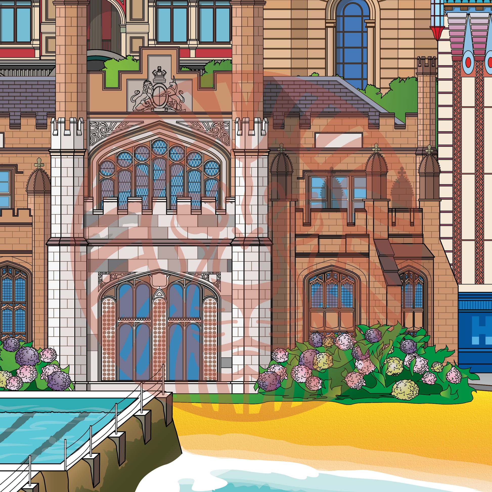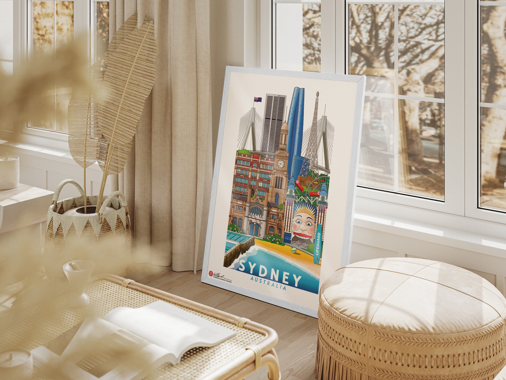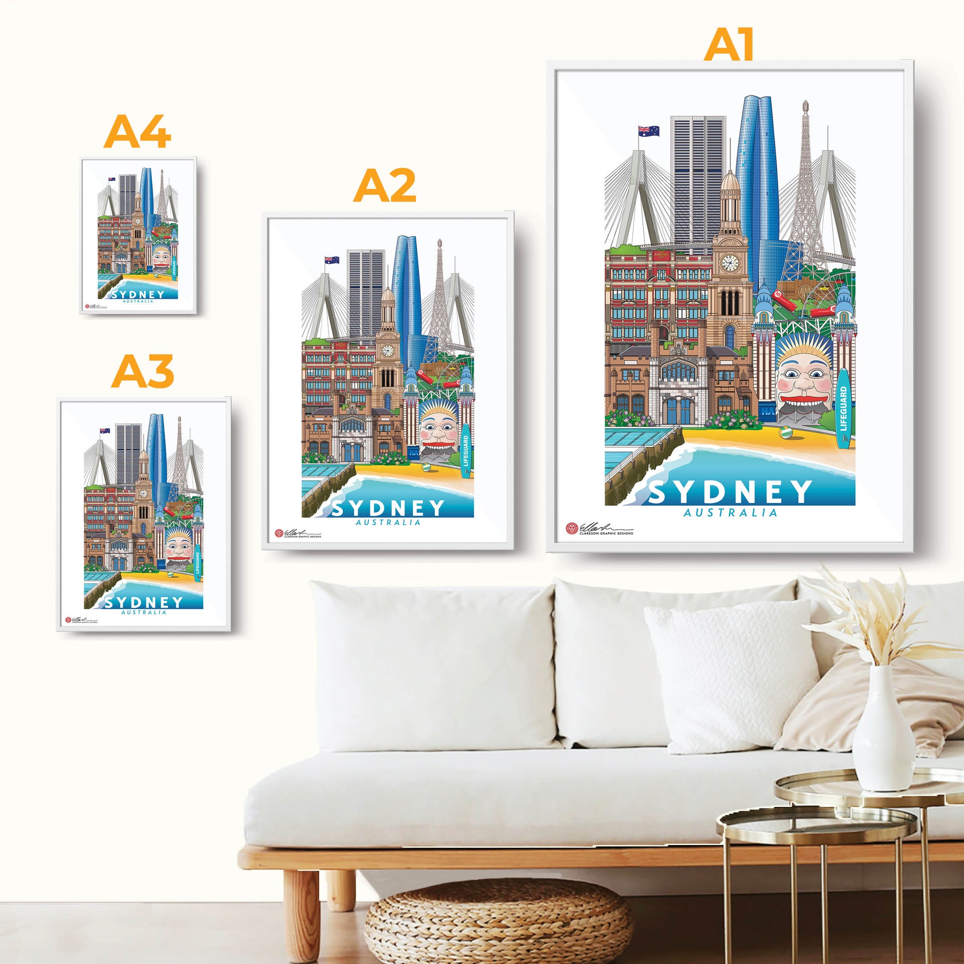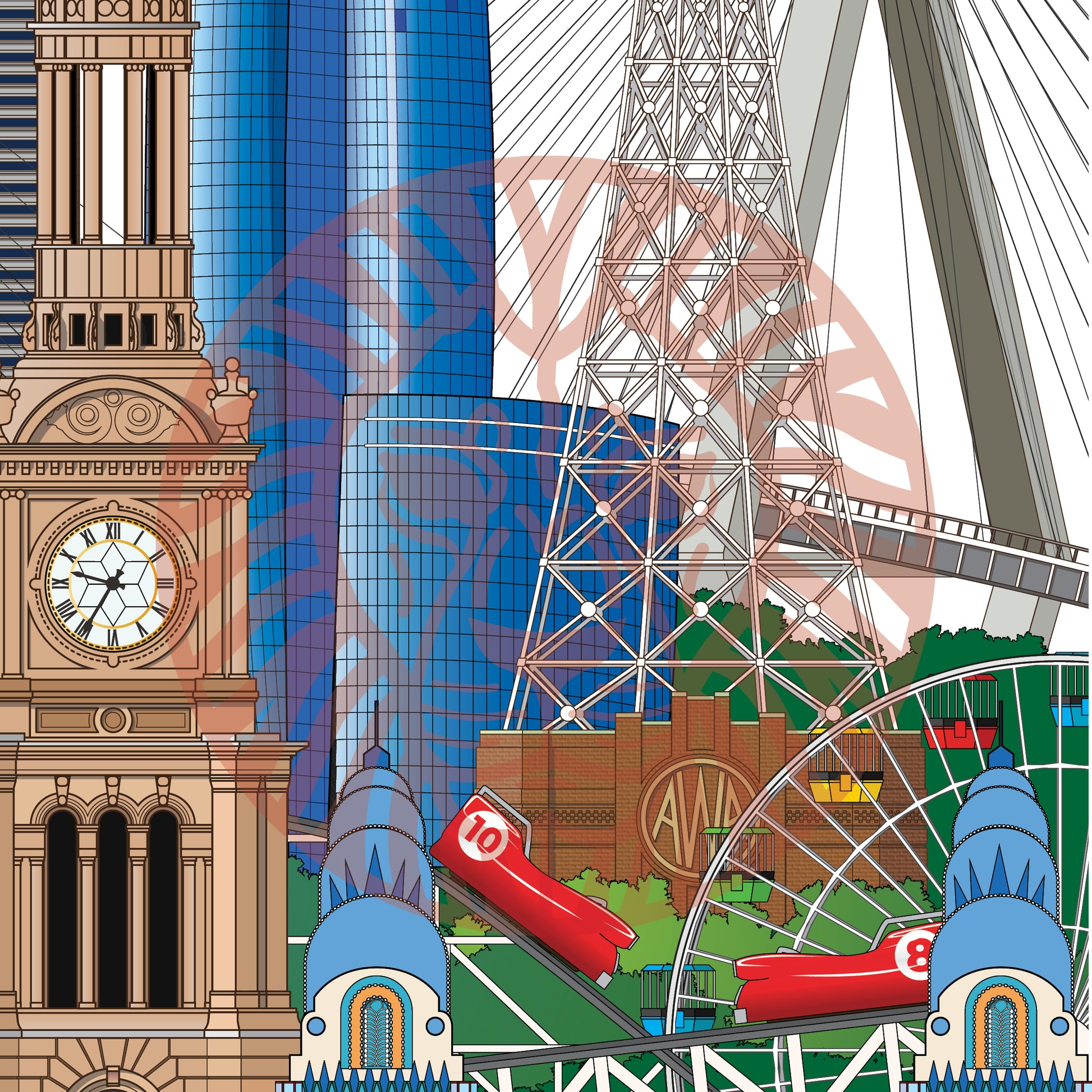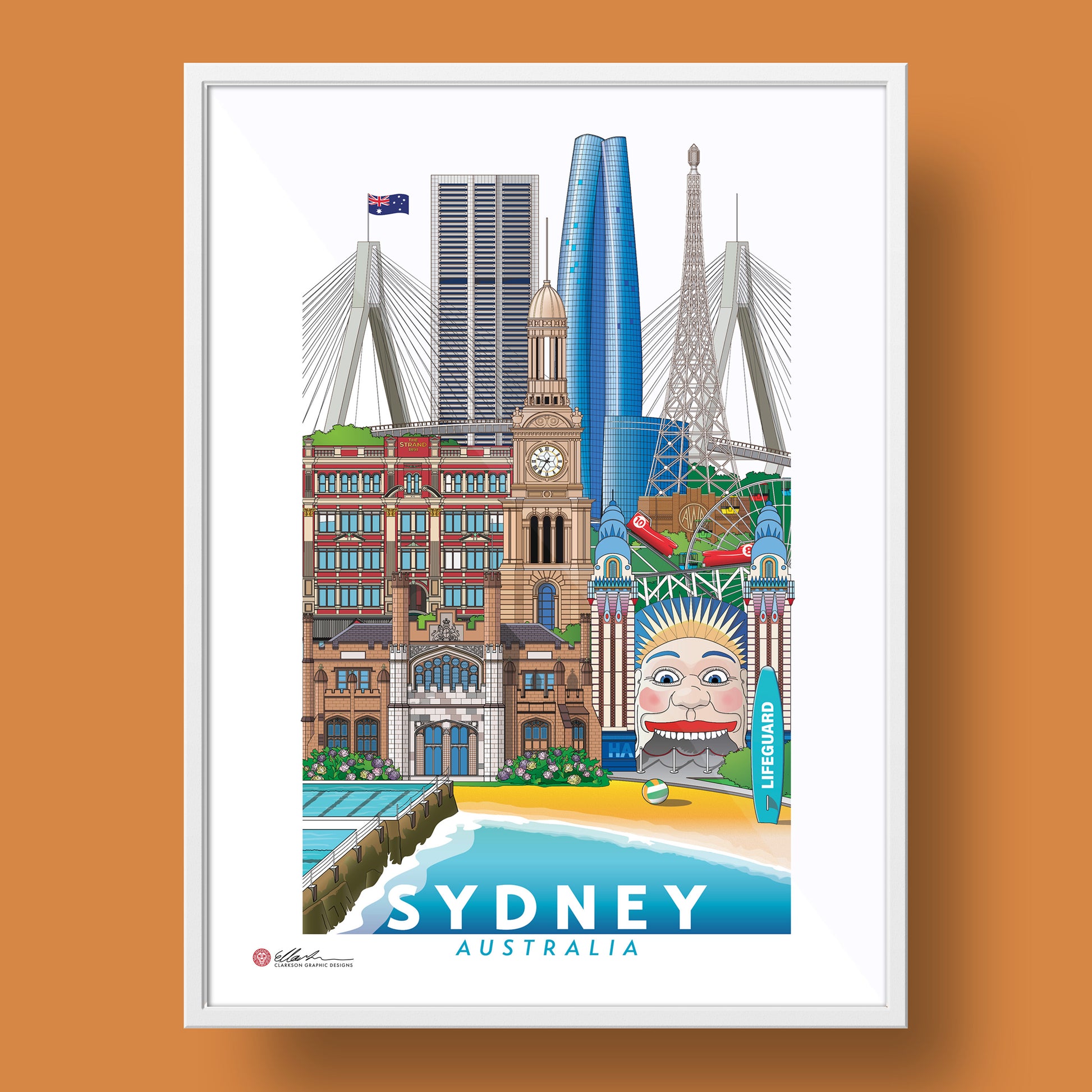 ANZAC Bridge, 25 Martin Place, One Barangaroo (Crown Casino), The AWA Tower, The Strand Arcade, Town Hall, Government House, Luna Park, Bondi Icebergs, Bondi Beach, Netball, Bondi Rescue Surfboard.