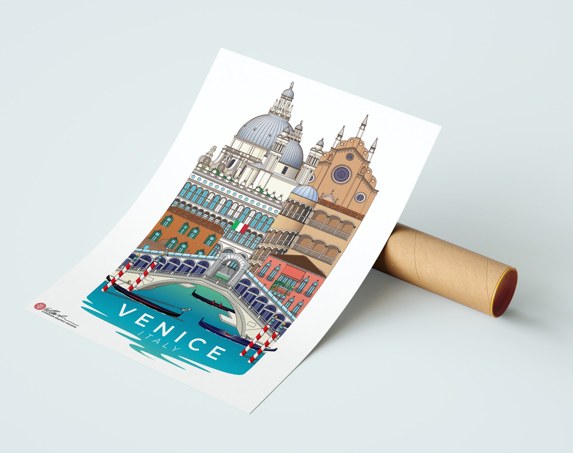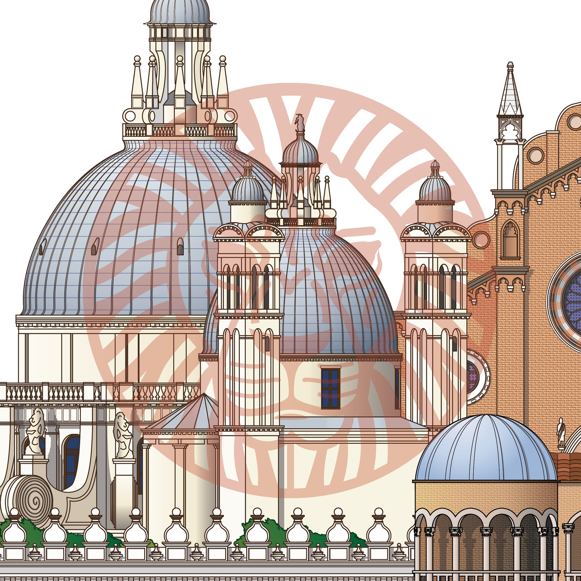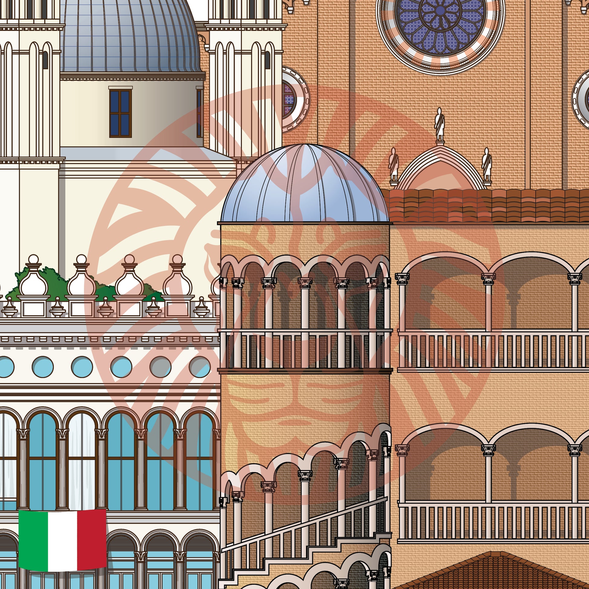 Santa Maria della Salute (Church), Frari Basilica, Procuratie Vecchie, Palazzo Contarini del Bovolo (The Snail Building), Venitian apartments, Rialto Bridge,