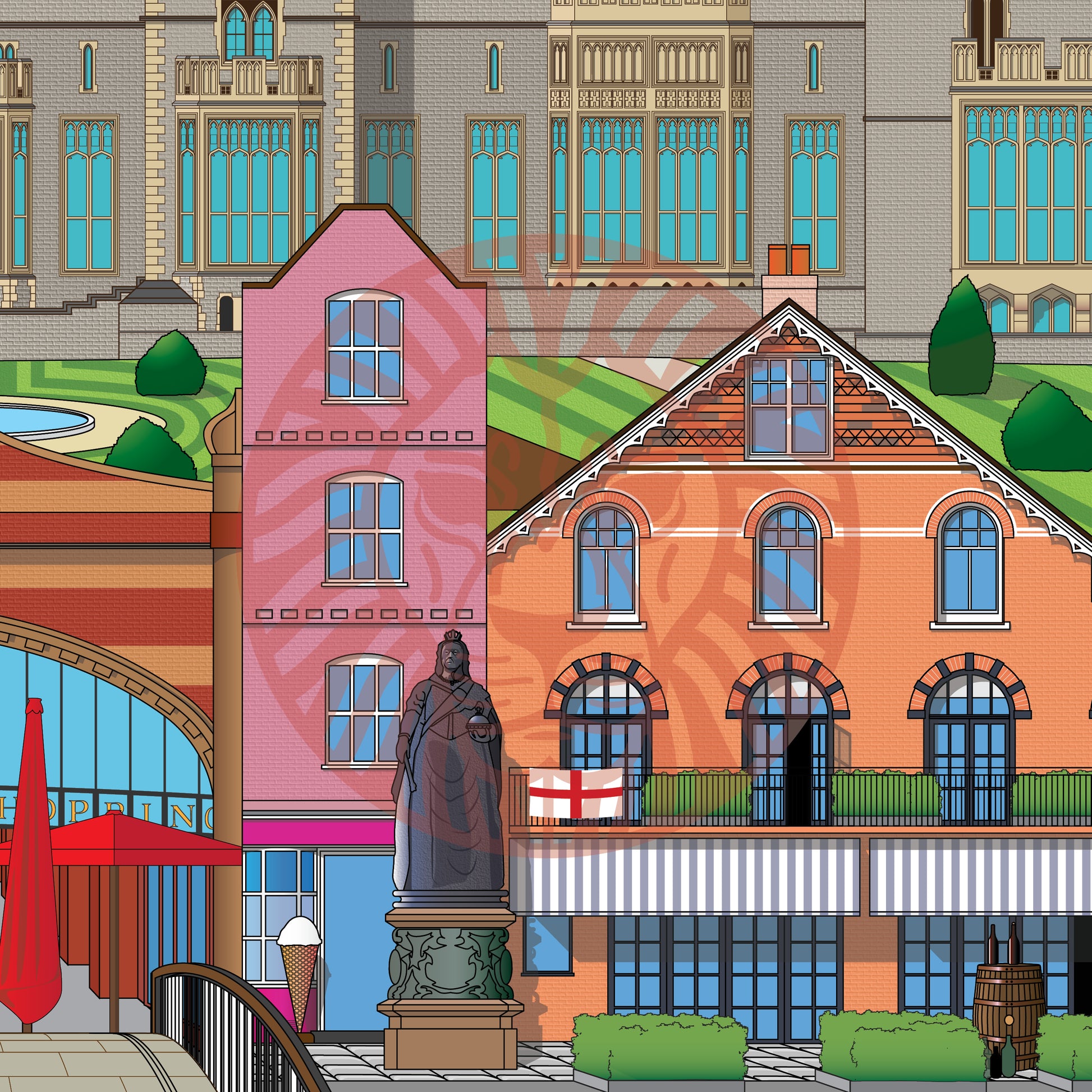 The Keep (Round Tower), St George's Chapel, the Private Apartments and East Terrace, Thai Square Windsor, 1 Church Lane, Windsor Royal Station, 3 Castle Hill, Côte Windsor, Thames Boat, Windsor Bridge.